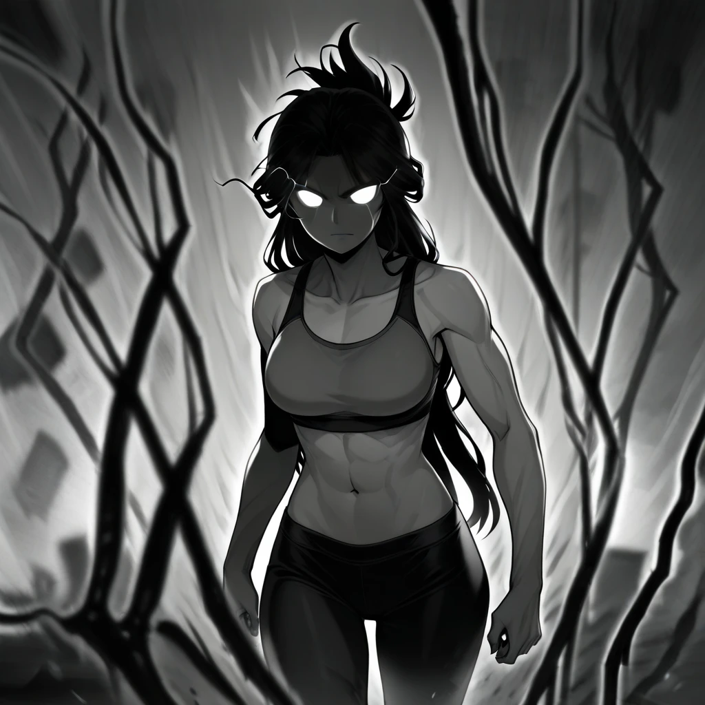 RageMode, no pupils, glowing eyes, monochrome, greyscale