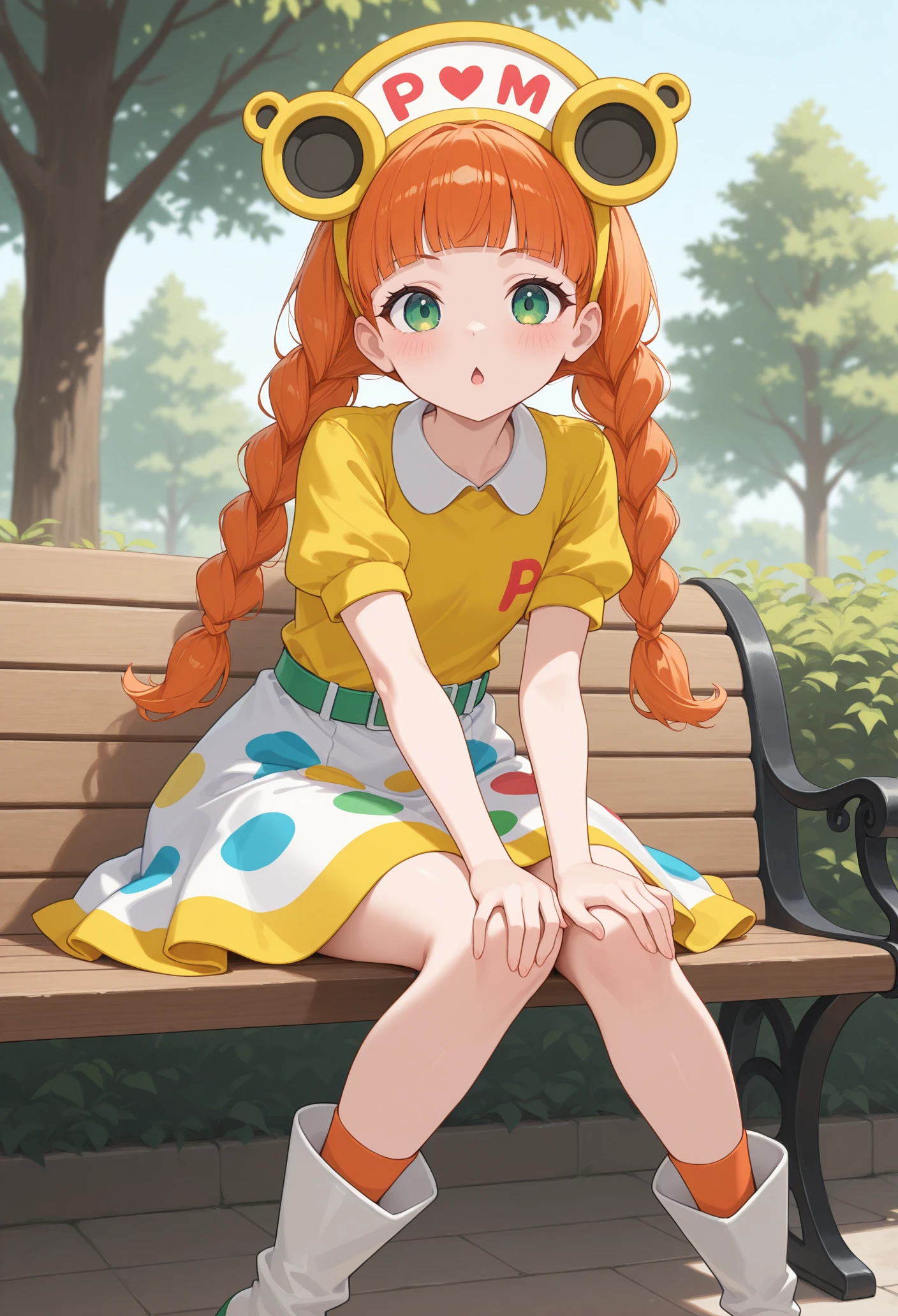 green eyes,orange hair,twin braids,long hair,blunt bangs,