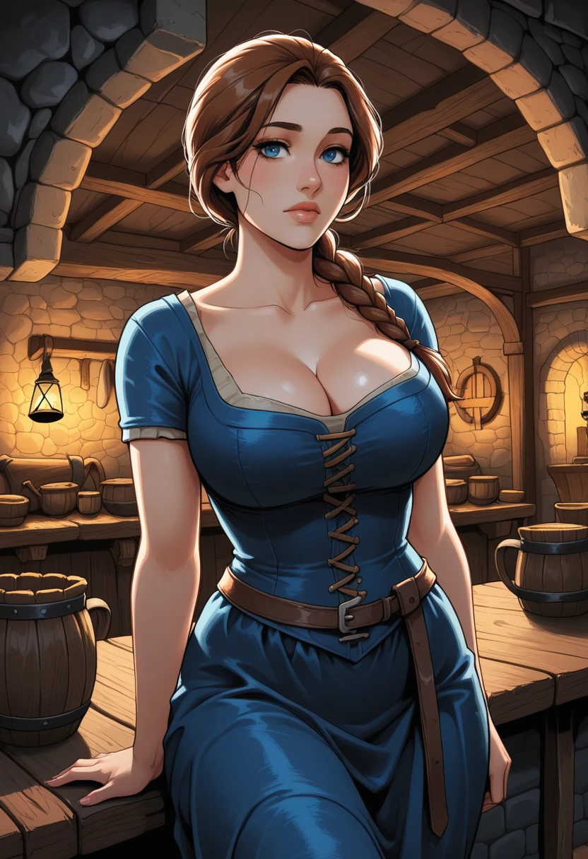 Main prompt : Kathkcd2,brown hair,ponytail,braid,blue eyes