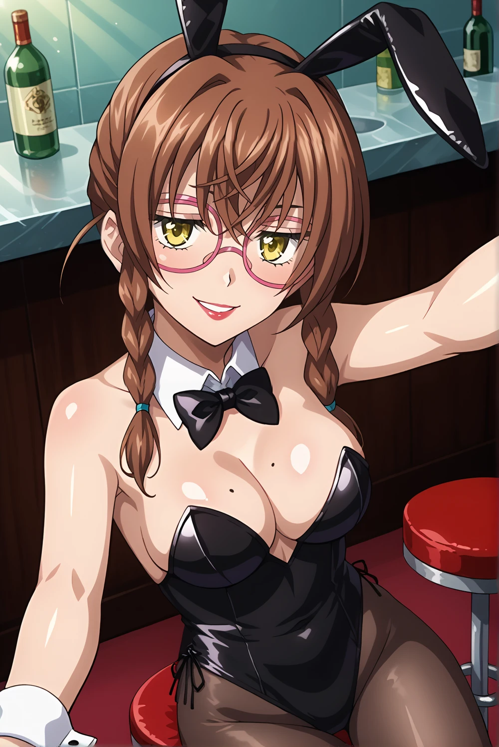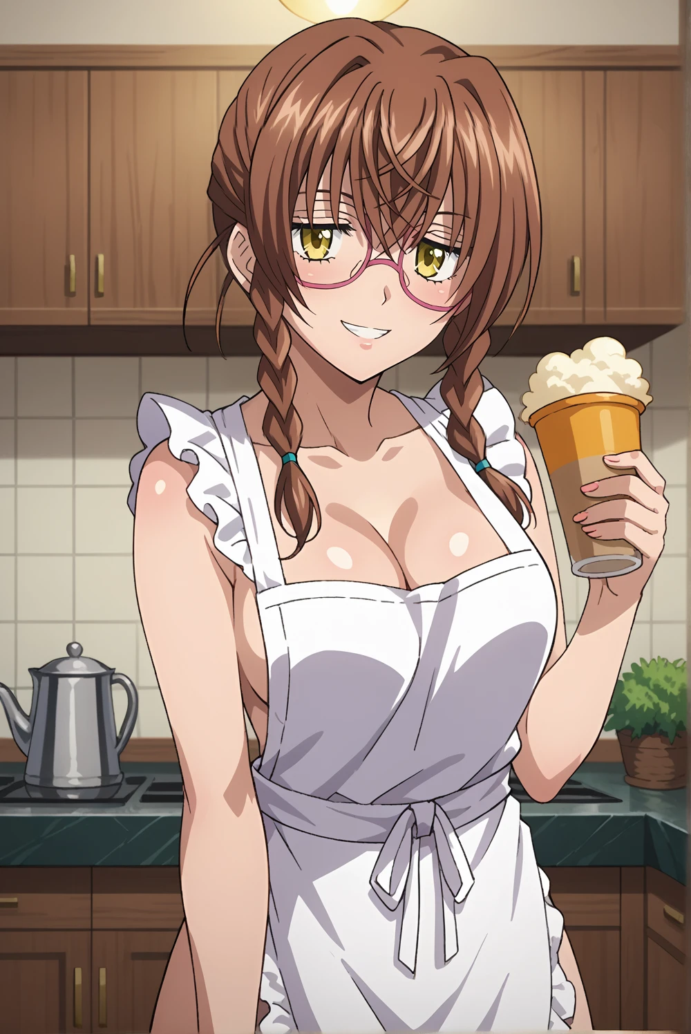 kiryuu-dxd, 1girl,glasses, brown hair, braid, twin braids, yellow eyes, golden eyes,