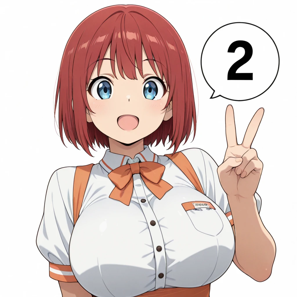 ポージングは人差し指上げ、vサイン、3本指上げ、4本指上げ、手開き