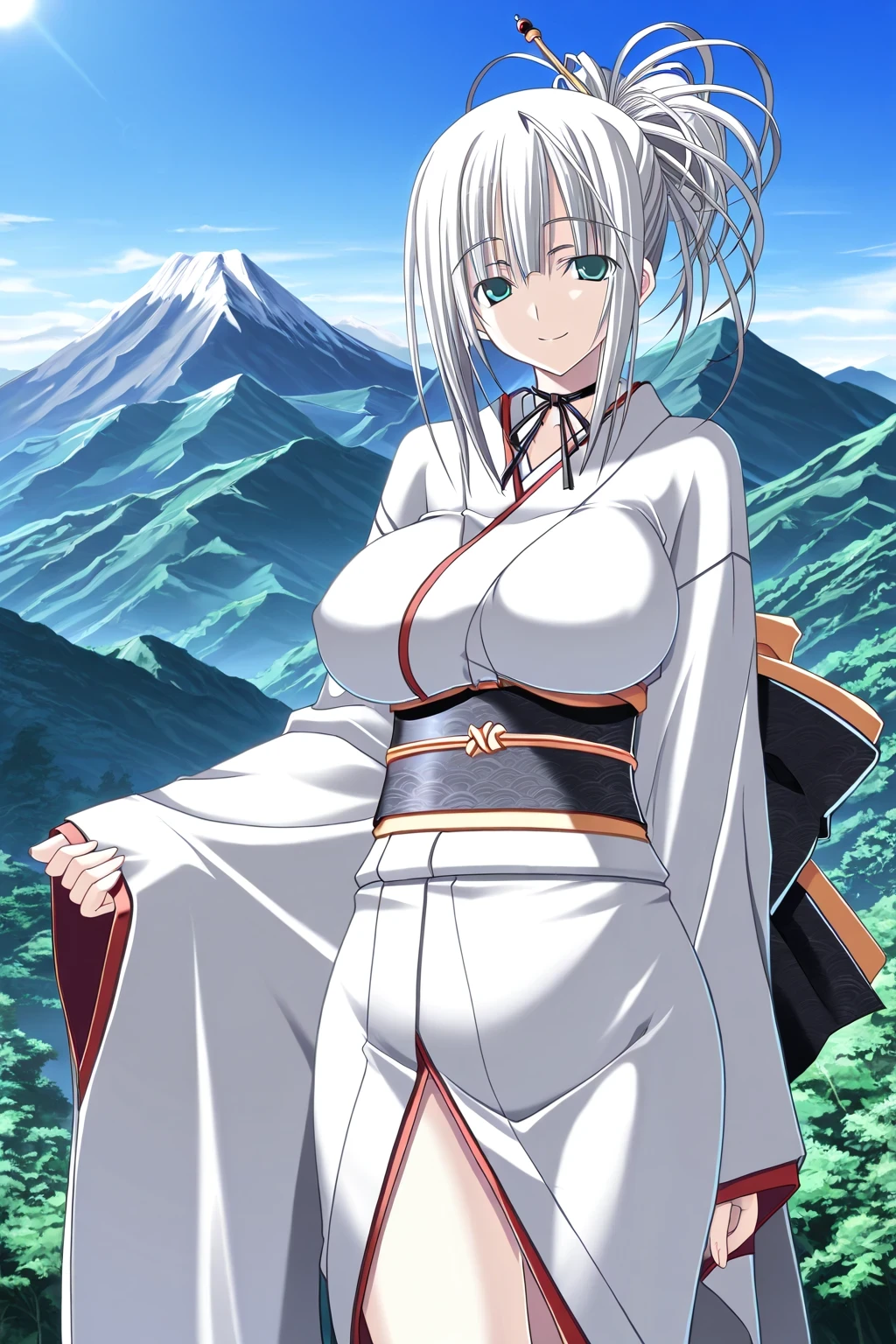 Suiren_Nukenin,Game Style,Early 2000s style,white hair,Short hair,bun,Teal eyes,Big Breasts,slim,Woman,maternal,