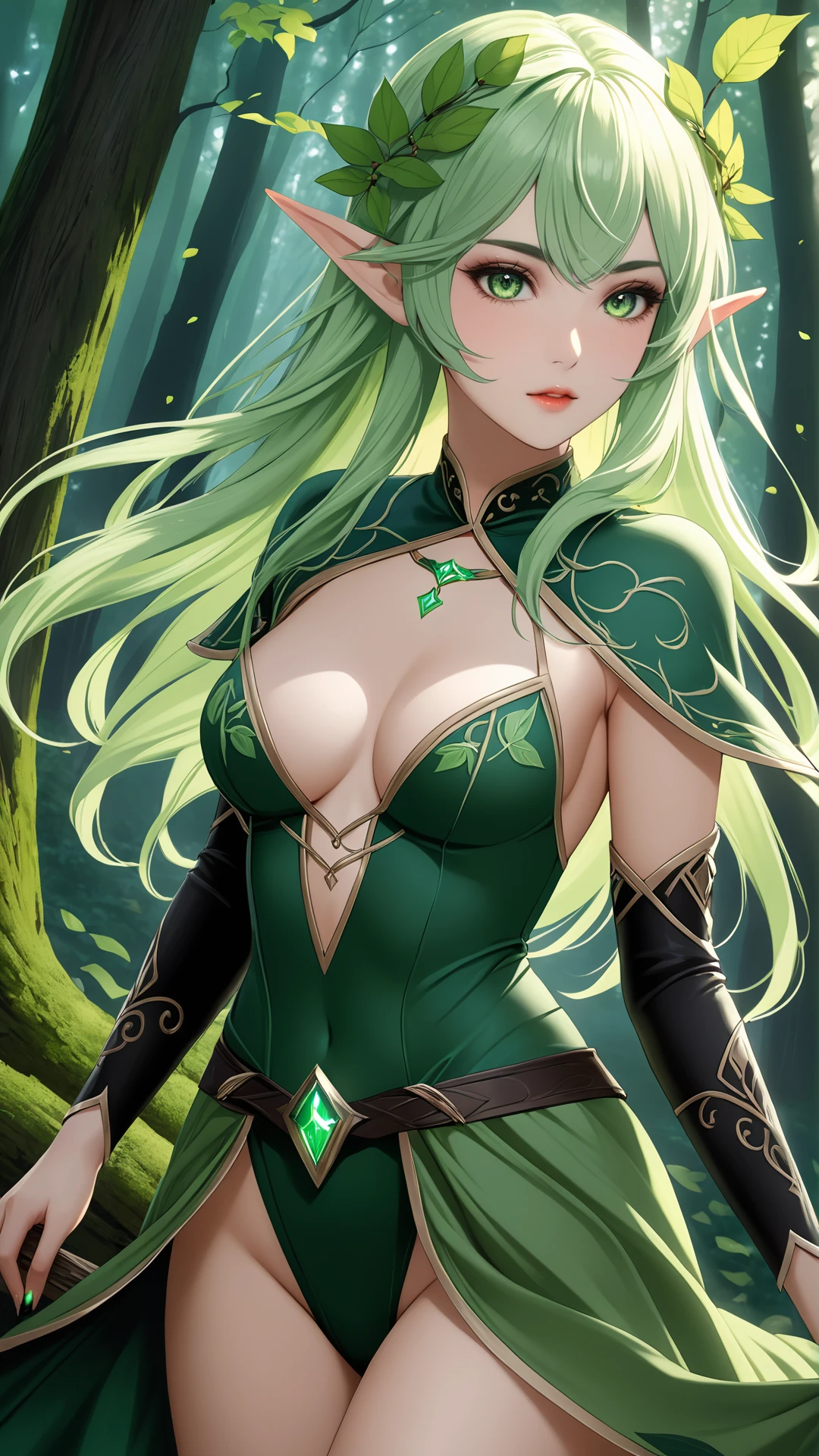 masterpiece, best quality, 1girl, long flowing hair, vibrant eyes, dynamic pose, anime face, detailed outfit, full body, fantasy setting, glowing particles, (anime style), cinematic lighting