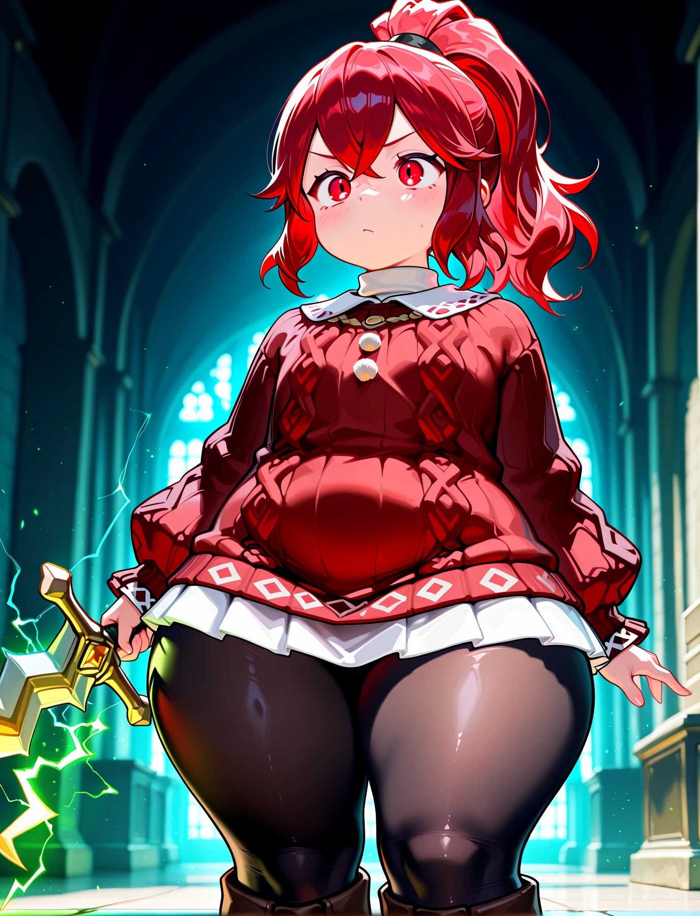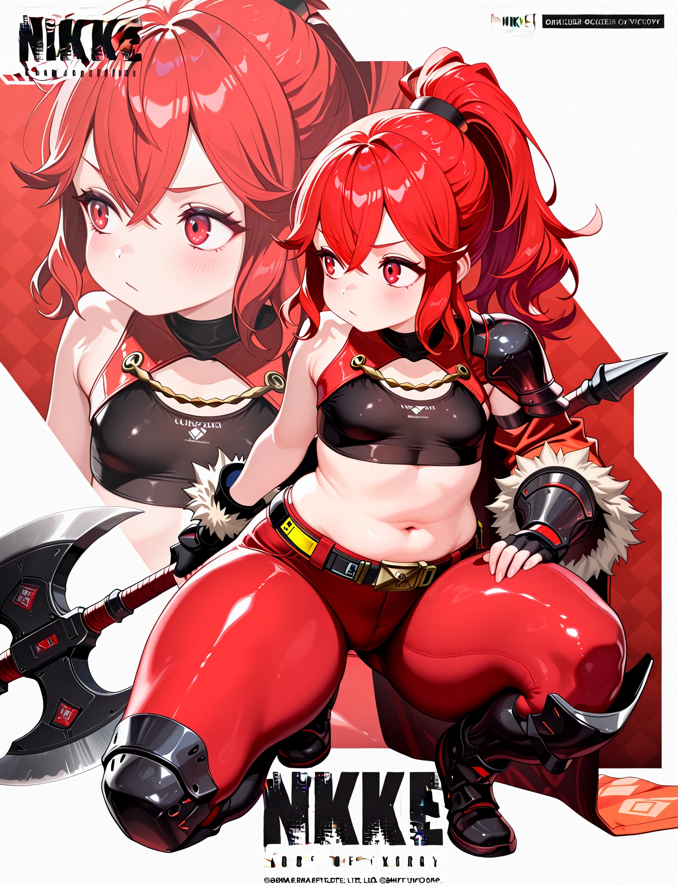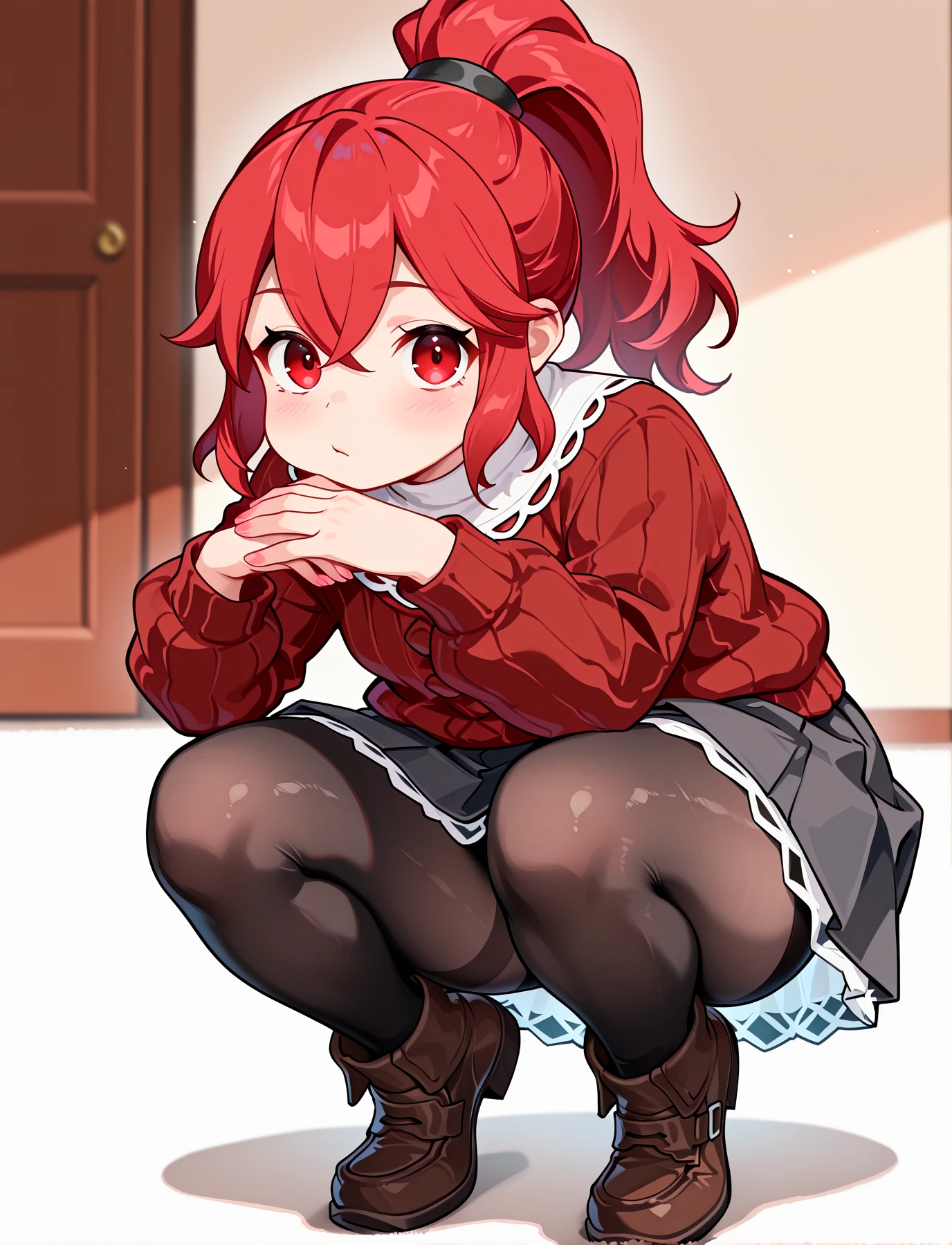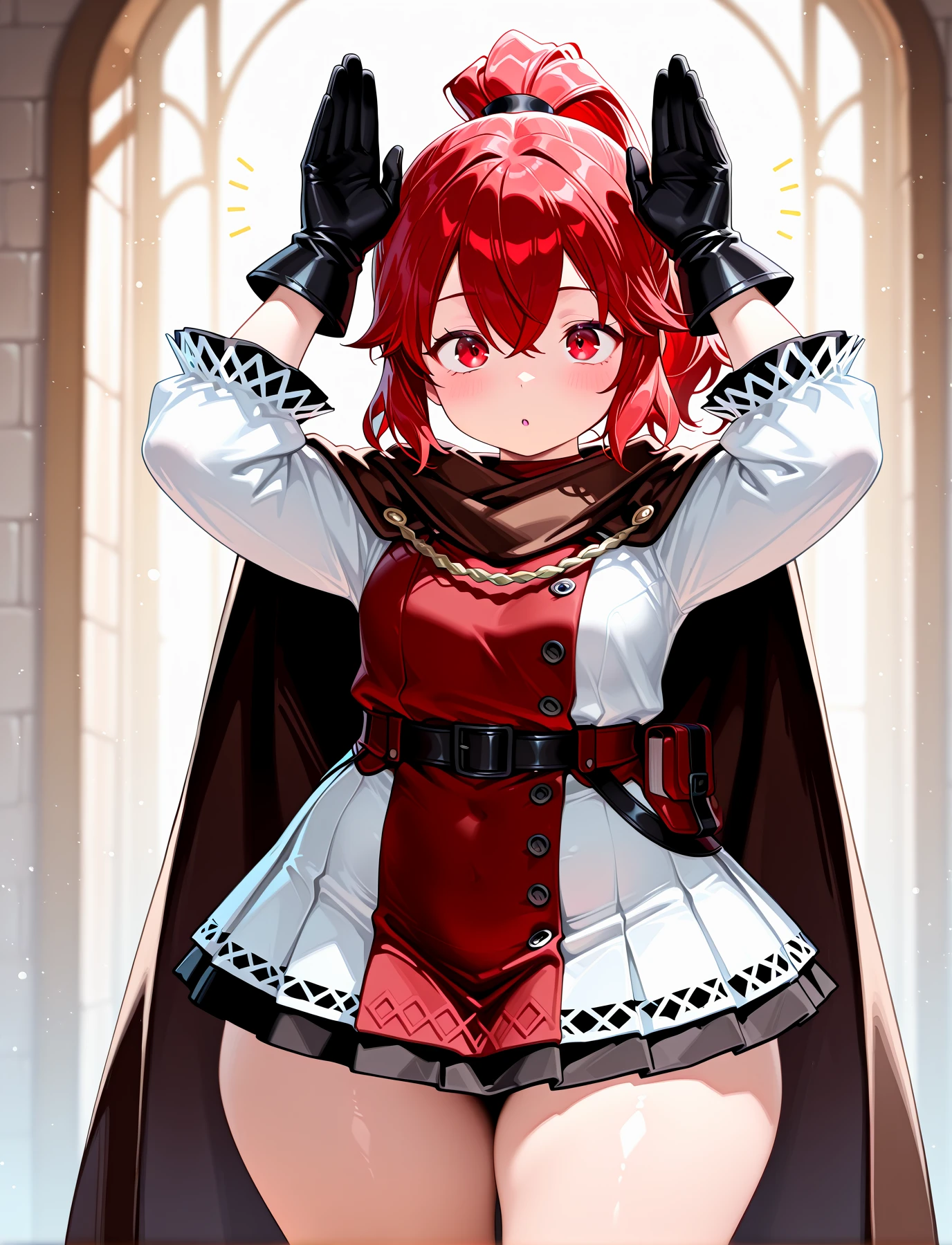 AnnaENG, red hair, red eyes, hair between eyes, sidelocks, bangs, high ponytail,