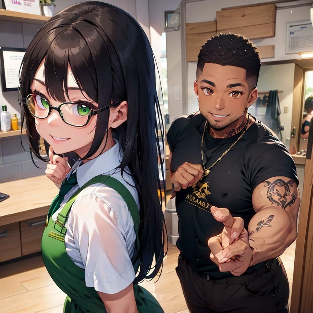 green-rimmed glasses