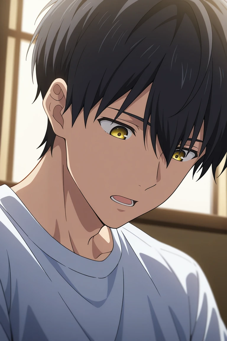 kuro sakuragawa,black hair,yellow eyes,short hair