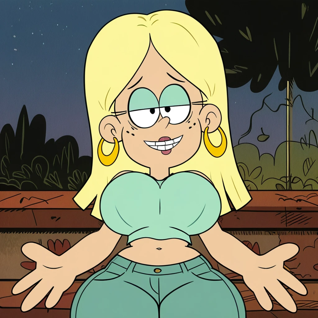 B3cc4CH, blonde hair, long hair, black eyes, freckles, hoop earrings, makeup, jewelry, eyeshadow,