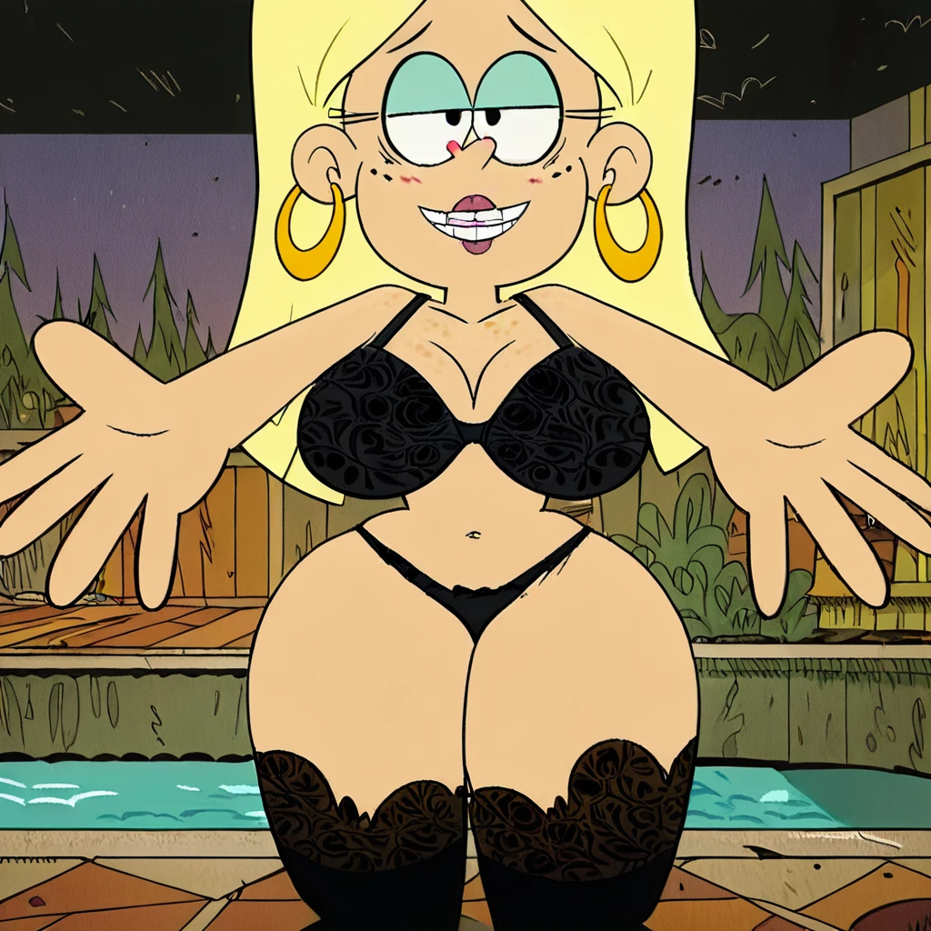 pantyhose, jewelry, fishnets, fishnet pantyhose, black leotard, leotard, cleavage, curvy