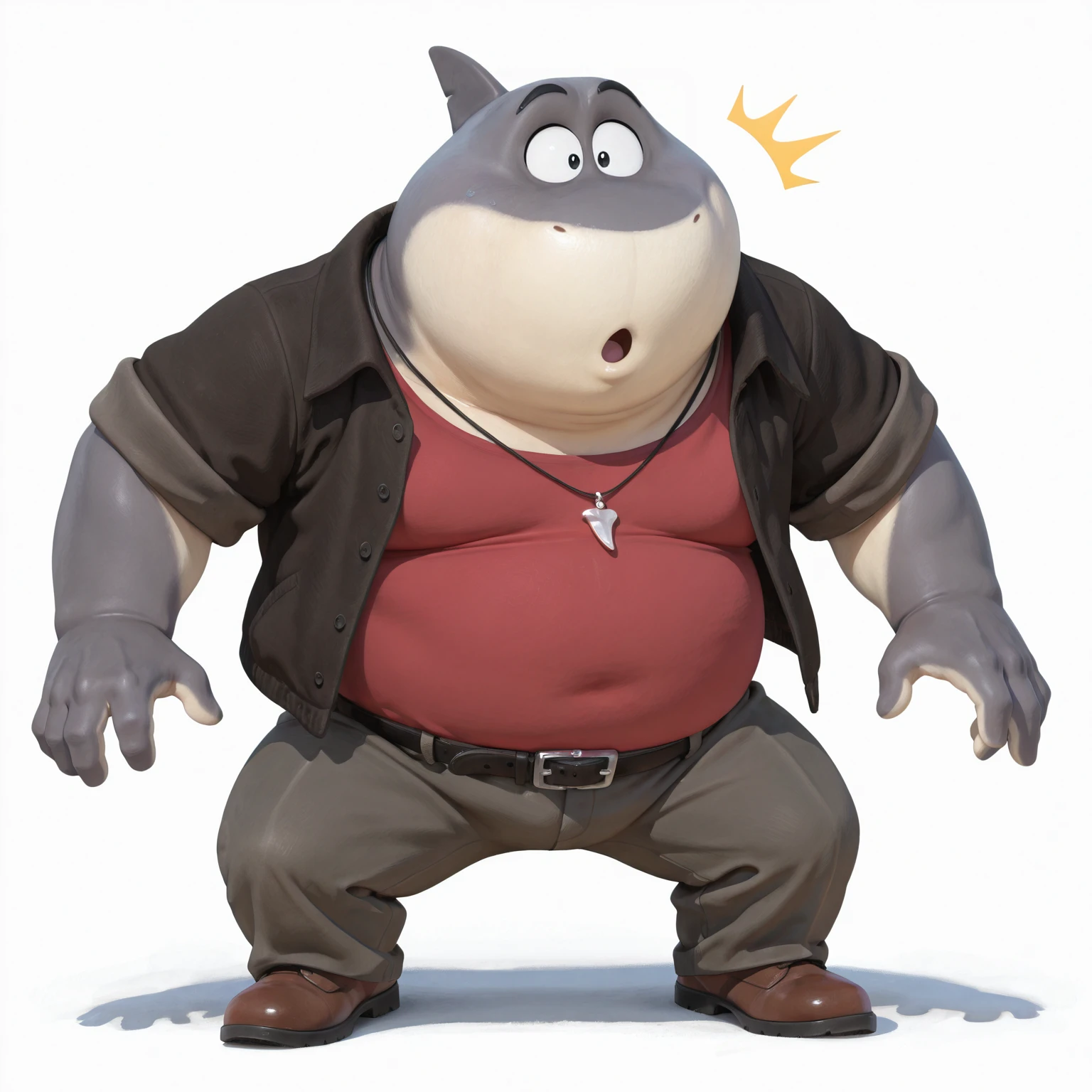 1boy, male, furry, anthro, shark, solo, grey skin, two-tone skin, black eyes, black eyebrows, nostrils, sharp teeth, shark fin