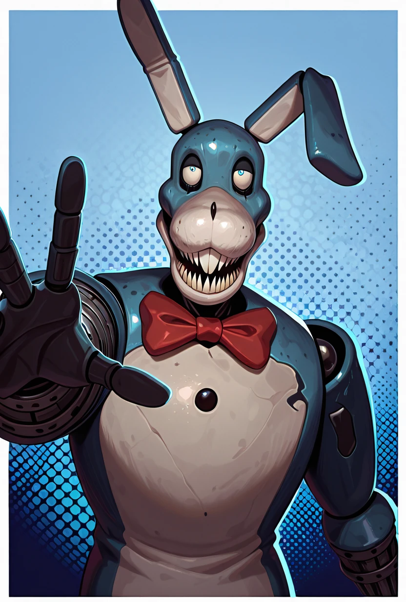 waltenfiles, animal ears, rabbit ears, teeth, solo, no humans, red bowtie, male focus, sharp teeth