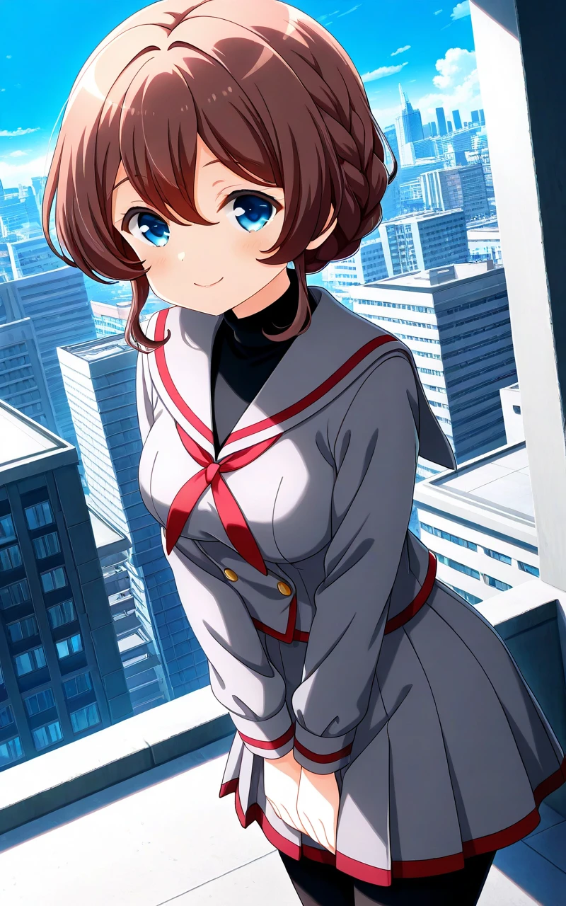 Trigger words: asatokasuga, brown hair, hair between eyes, sidelocks, nape braid, short hair, blue eyes