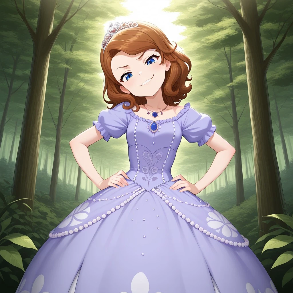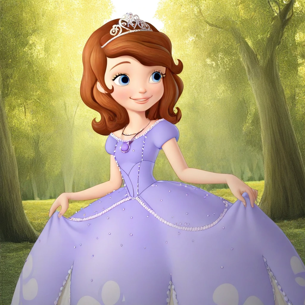 sofia_tf, brown hair, blue eyes, tiara, dress, necklace