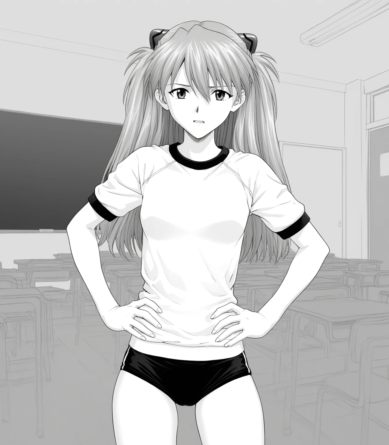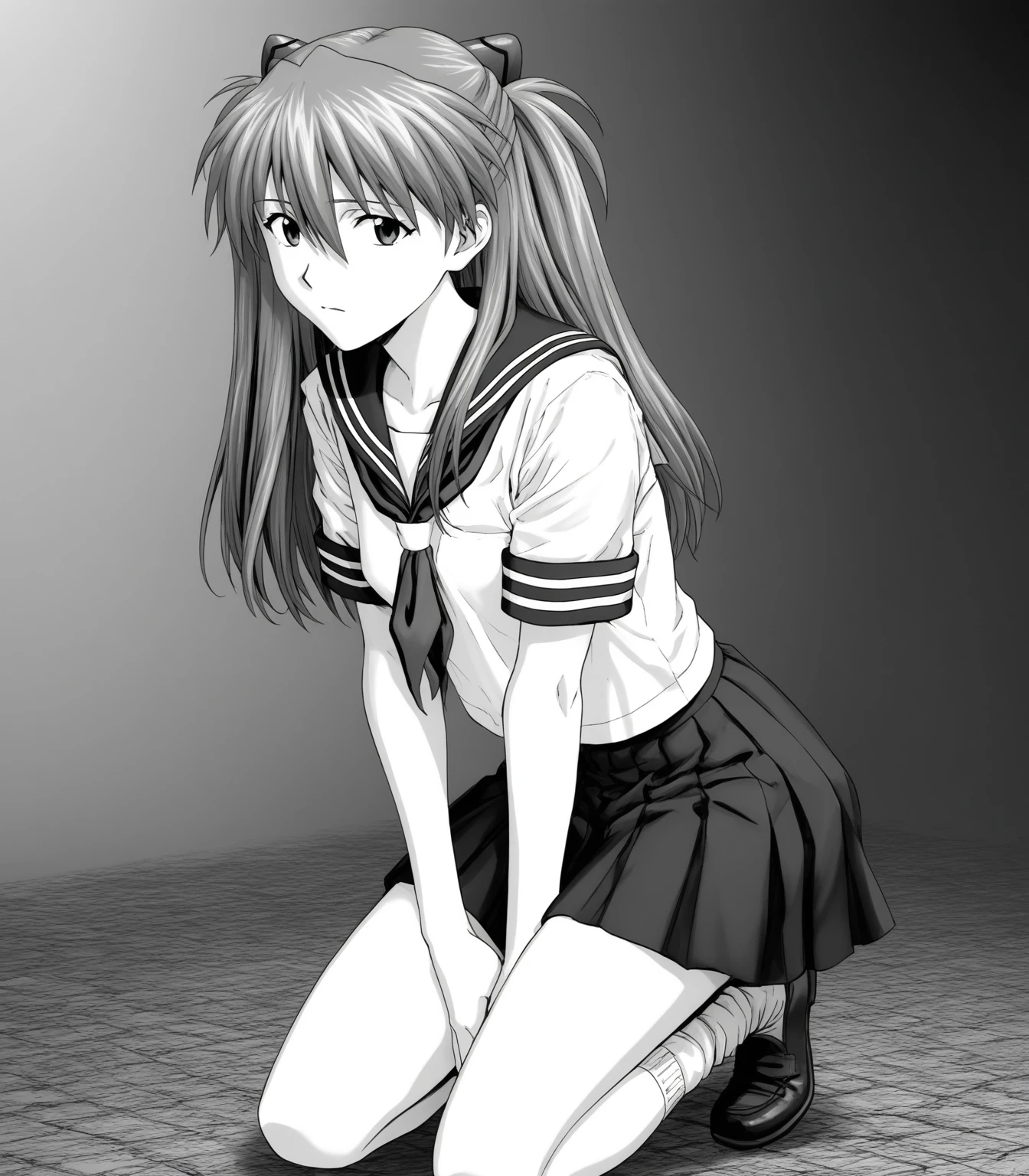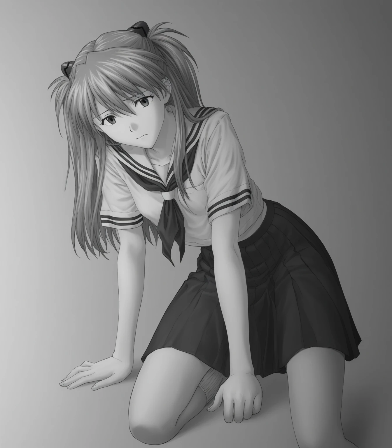 monochrome,greyscale,m1n9r1x14n9,1girl,solo,long hair,souryuu asuka langley,
