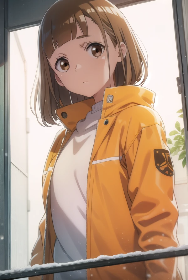 mari tamaki, looking at viewer, bangs, brown hair, (brown eyes:1.5),