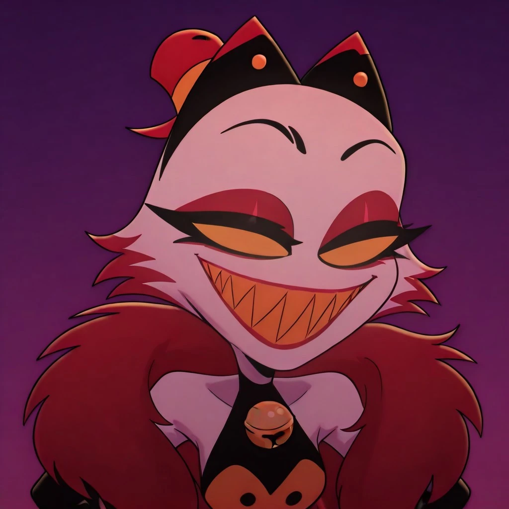 Other tags: no pupils, yellow sclera, white fur, makeup, neck bell,