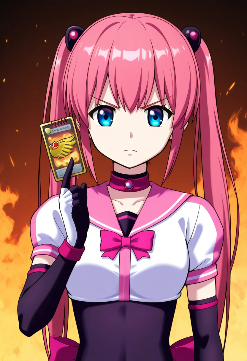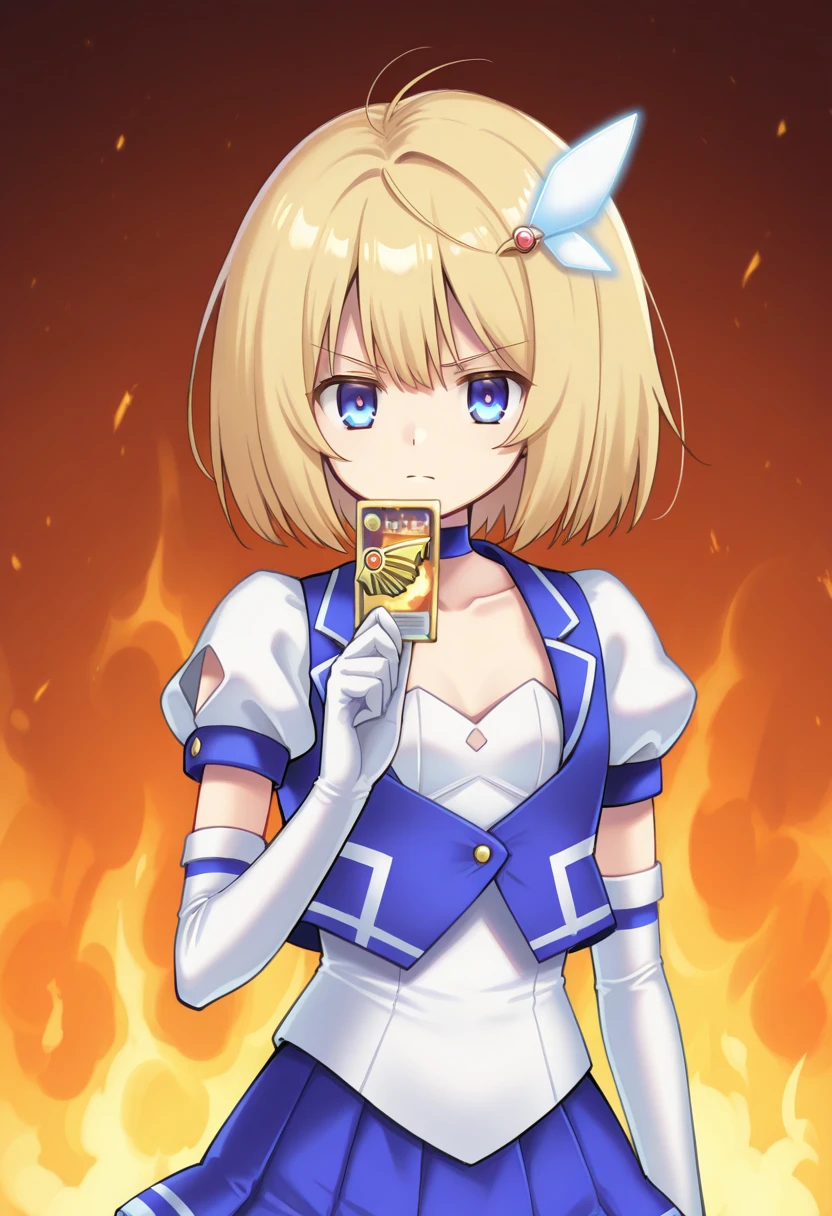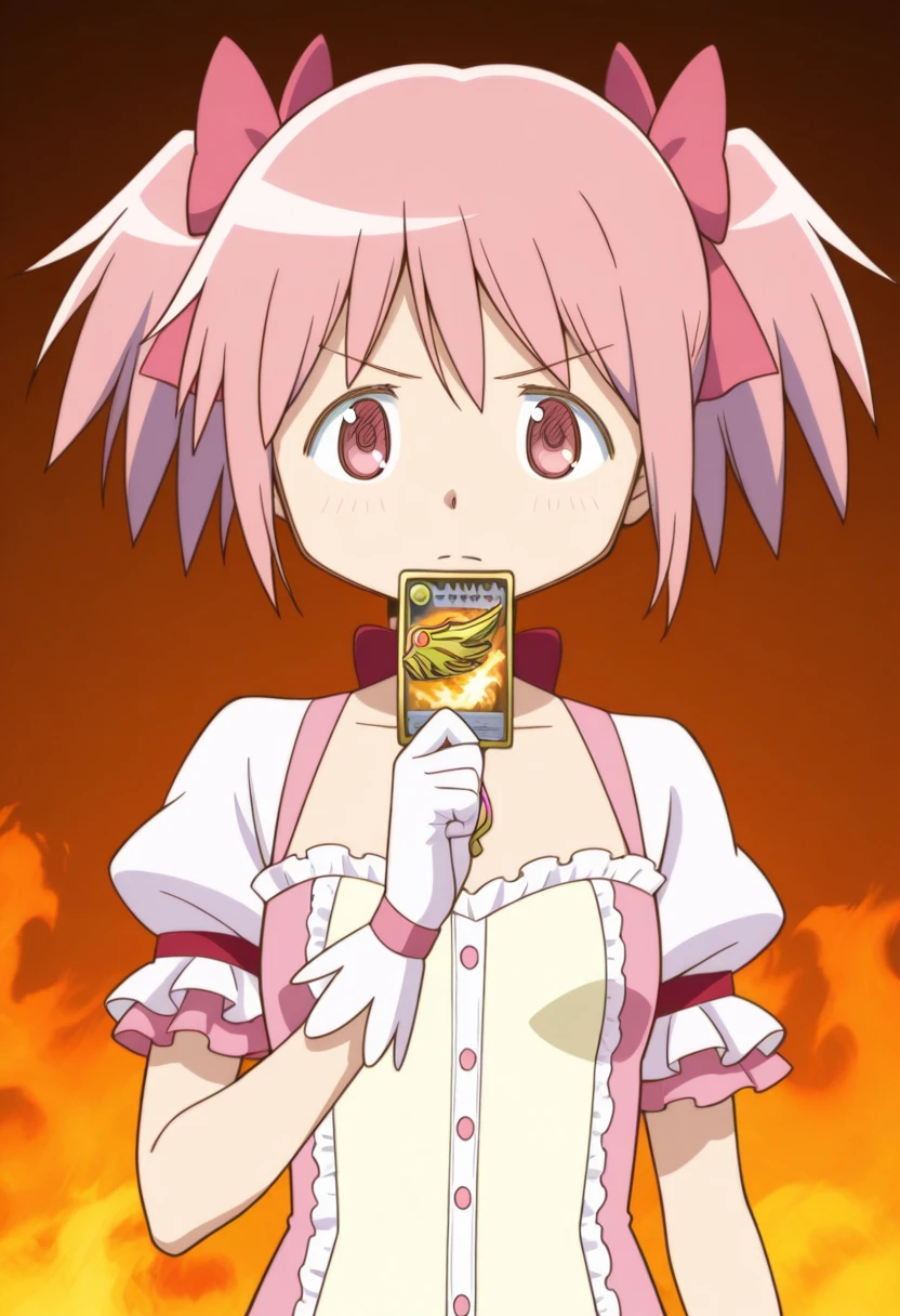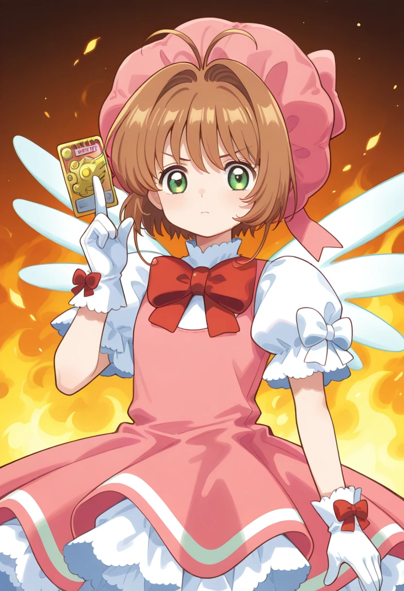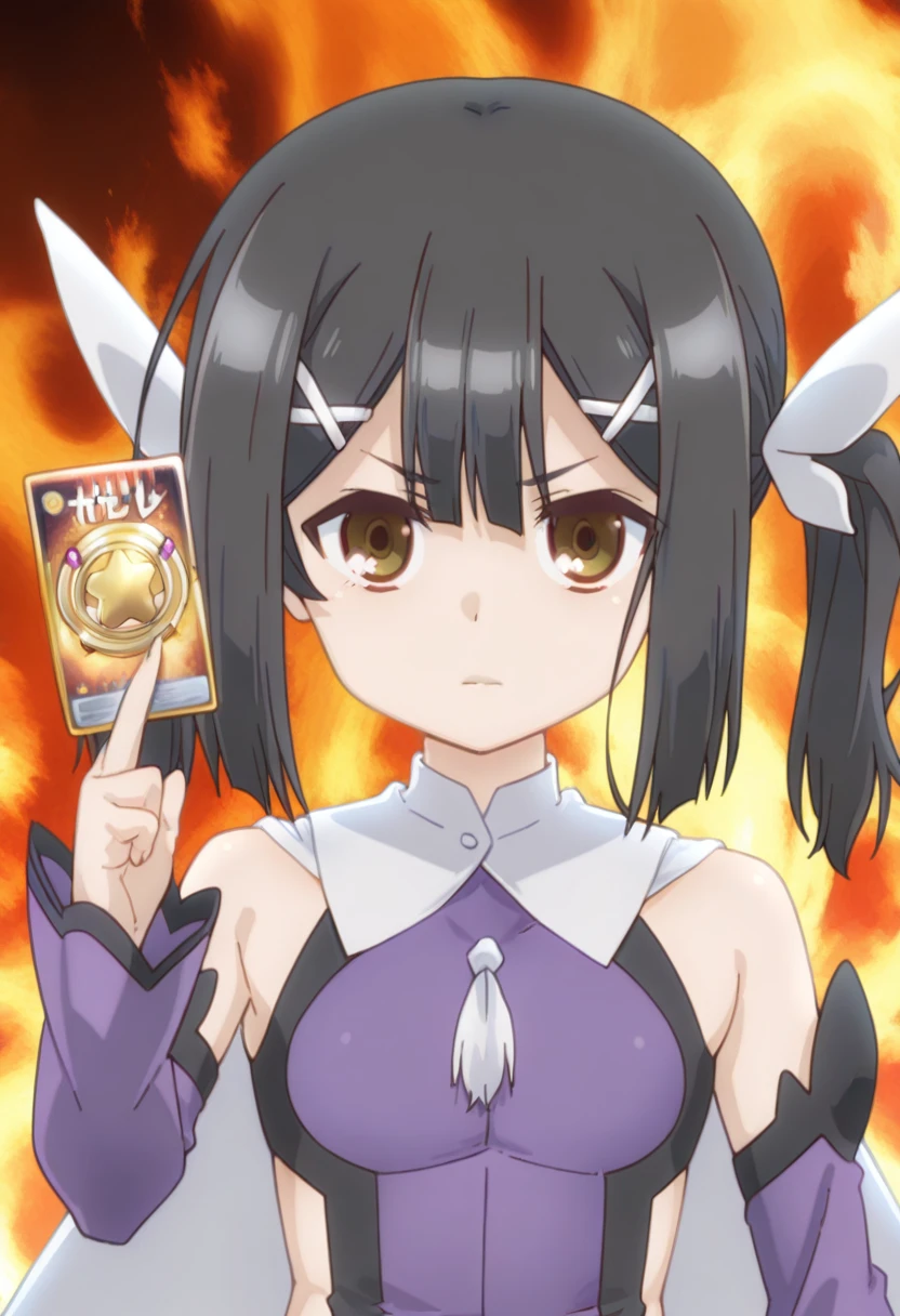 ryukisurvivalcard, hand up, holding card, fire background,
