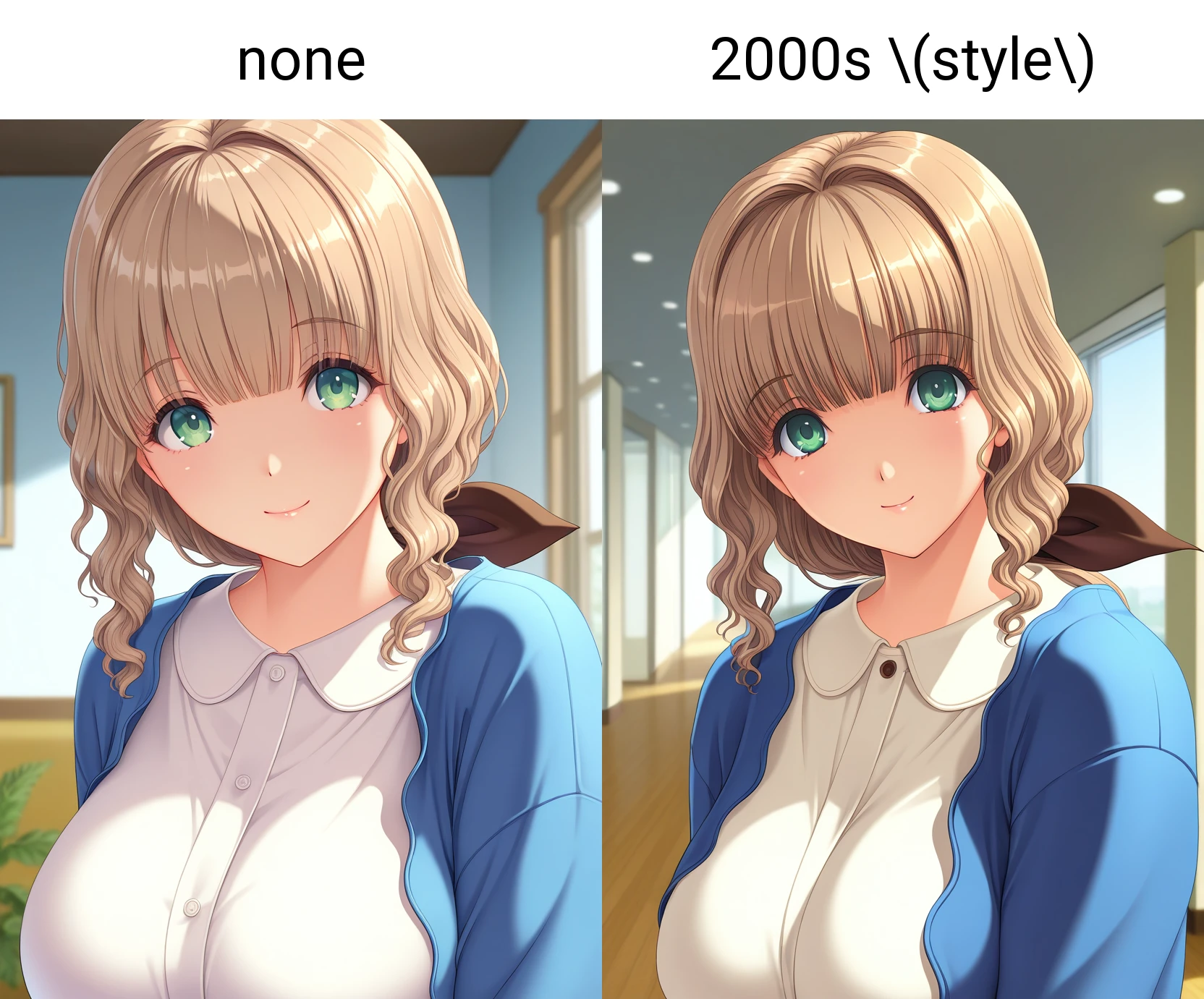 プロンプトに "2000s (style)" を使った方が、ゲームの雰囲気に近くなります。