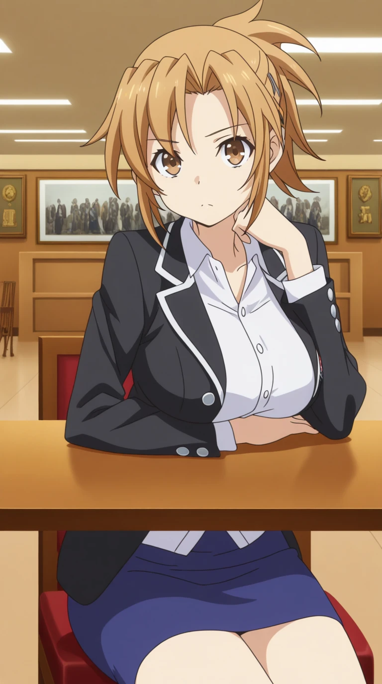 ai yamabuki, short hair, brown hair, hair ornament, brown eyes, ponytail, mature female, large breasts, anime screencap