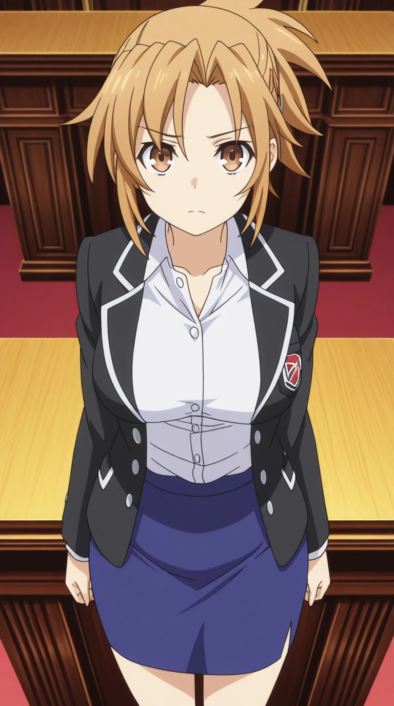 blazer, black blazer, shirt, white shirt, collared shirt, skirt, blue skirt, ,