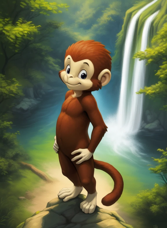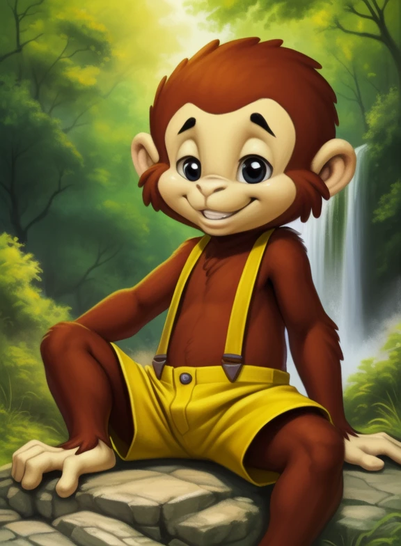 YoyoAmyRosMilPow, monkey, brown fur, yellow pants with suspenders, small, chibi