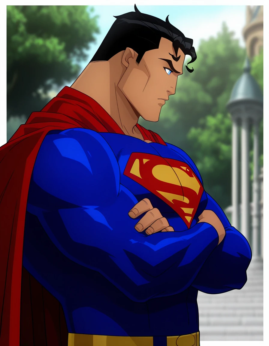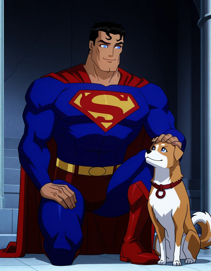 STYLE_DC_SupermanBatmanApocalypse_ownwaifu, 1boy, red cape, male focus, black hair, boots, blue bodysuit, muscular male, crossover, dog, headpat, smile, on one knee, superhero, petting, full body, belt, kneeling, animal, parody, red footwear, short hair, blue eyes, hand on own kneeIf you appreciate the models, please consider leaving us a review and sharing the images generated using this model. Your feedback is valuable to both us and the AI community. Happy prompting, AI enthusiasts!π
