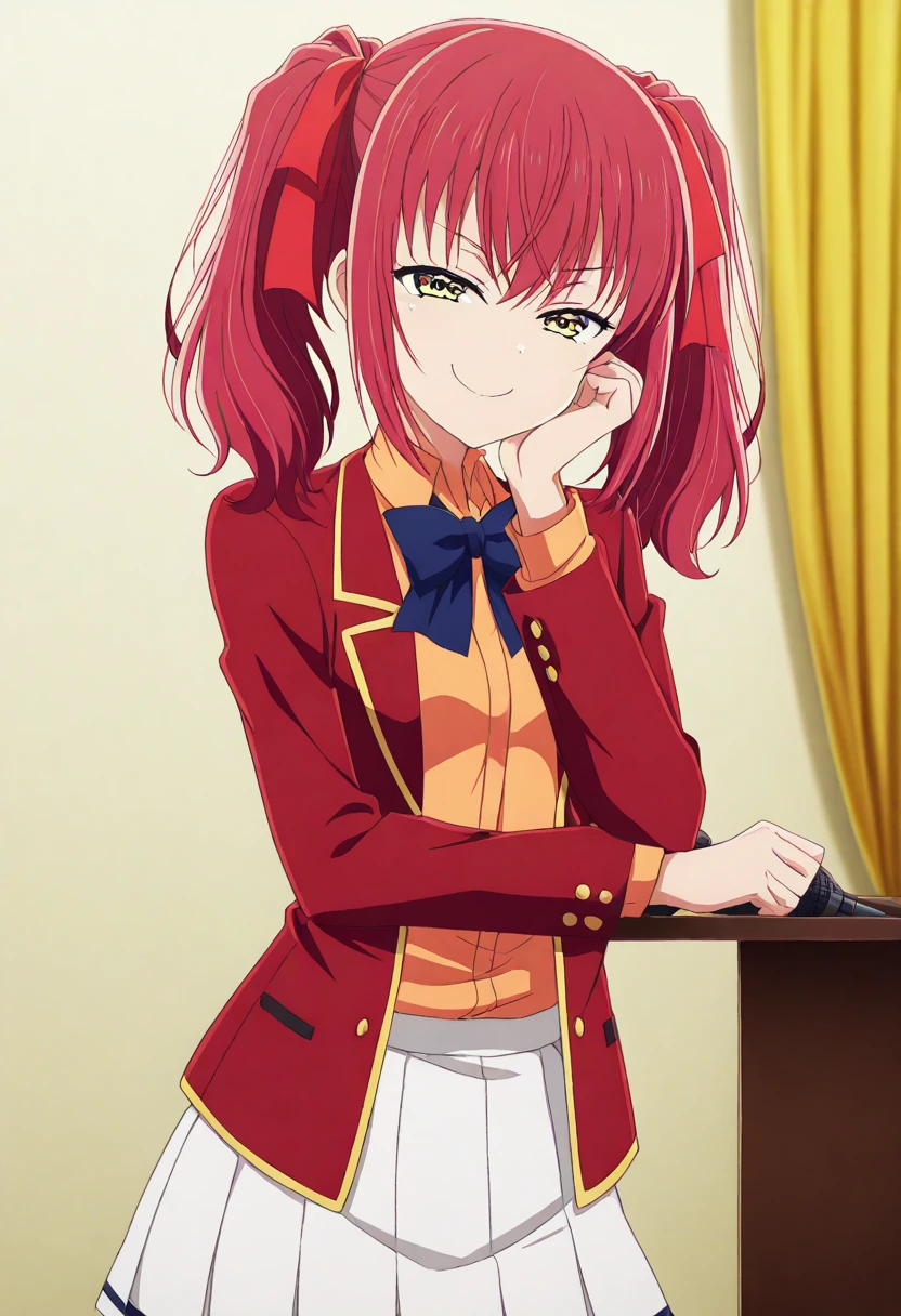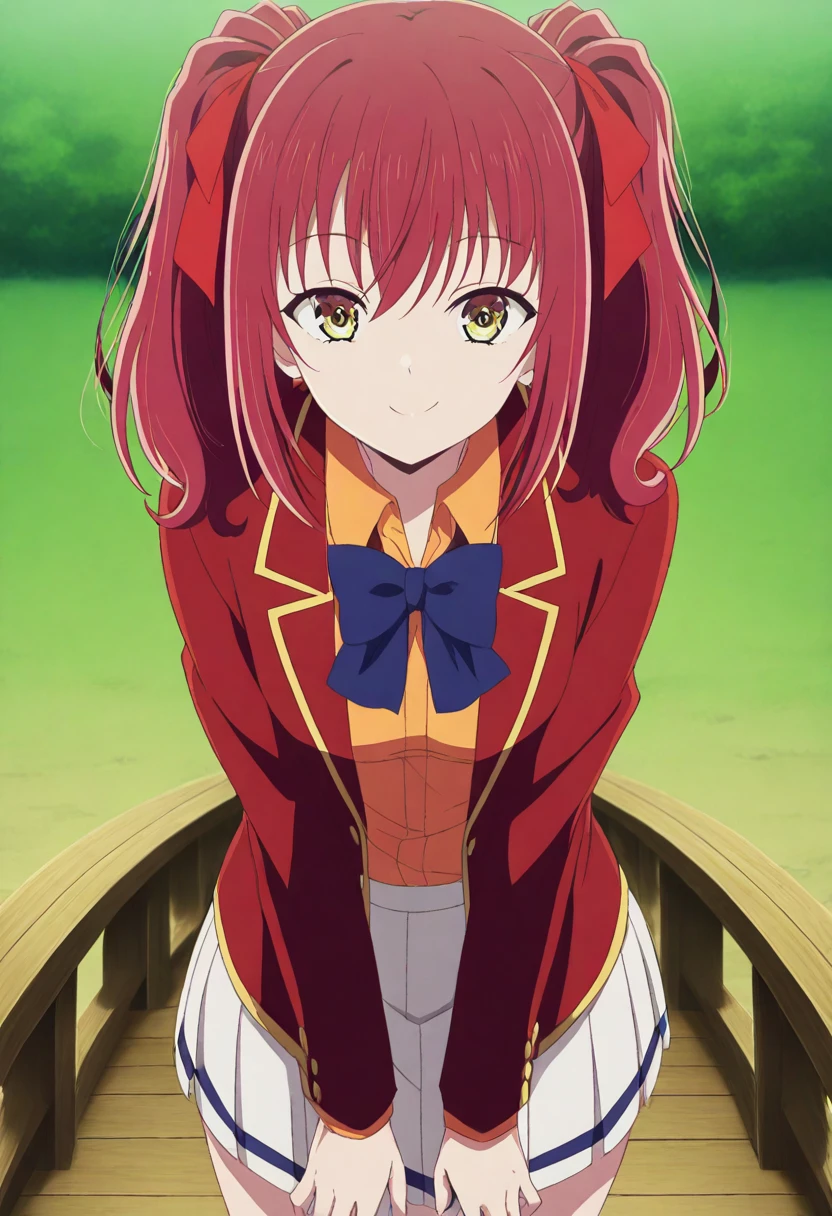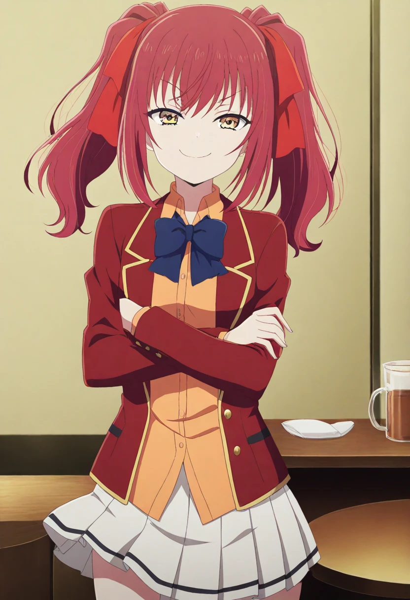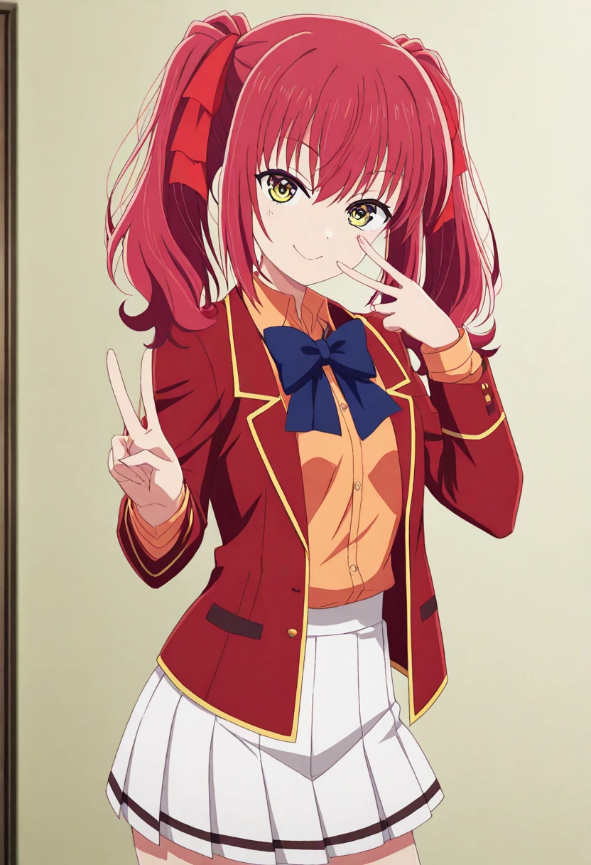 ichika amasawa, twintails, yellow eyes, hair ribbon, red hair, small breasts, anime screencap