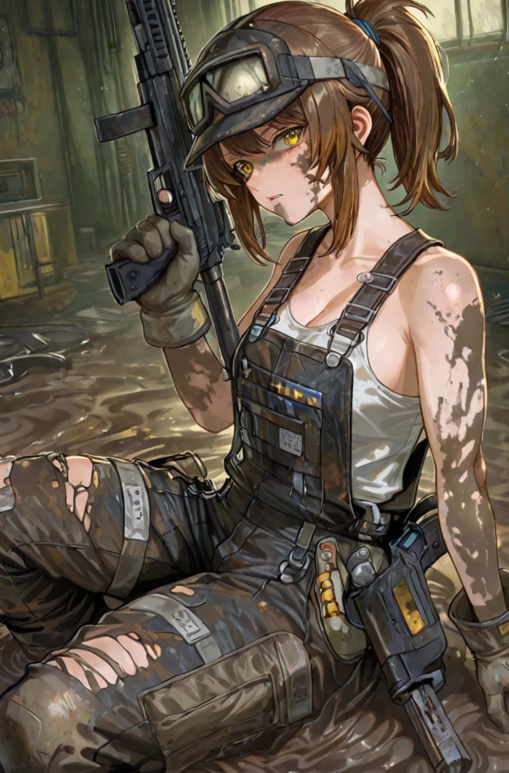 pos: dirty oily grimy dusty, oil stains on skin and clothes, grease smudges, particles, grime accumulation, mechanic dirty, post-apocalyptic dirty, heavy soiling, oil slick, soot and grime, filthy, stained clothing, dirty_face
