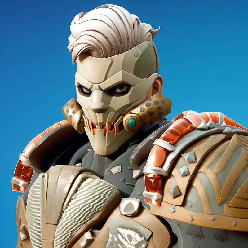 1boy, meg@don, muscular, white hair, mask, armored coat, pauldrons, pants, boots,