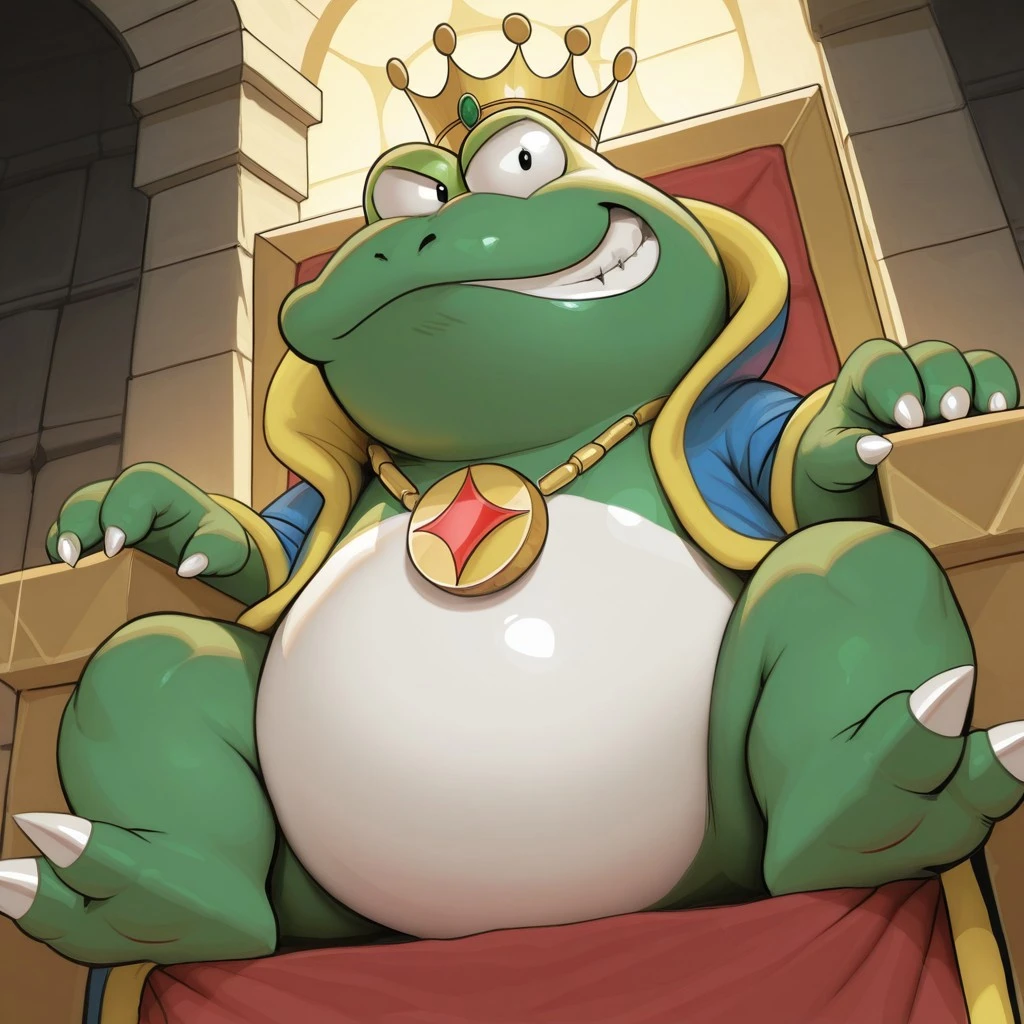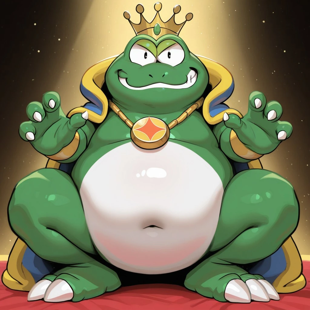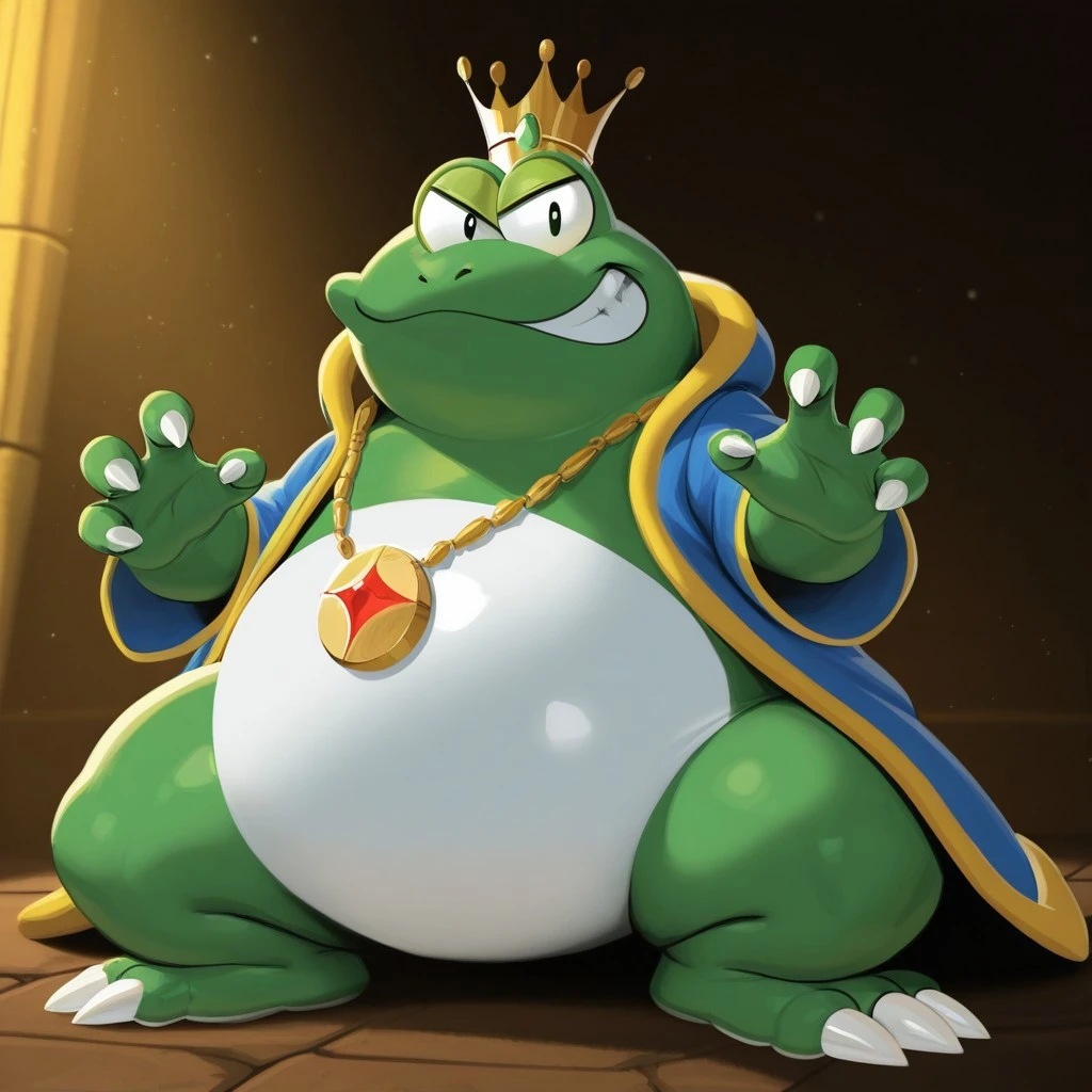 Tags: Wart_SMB2, frog, green skin, snout, nostrils, white belly, white claws, 4 fingers, 2 toes, light green eyelids, big eyes, black pupils, chubby, short legs, thick thighs