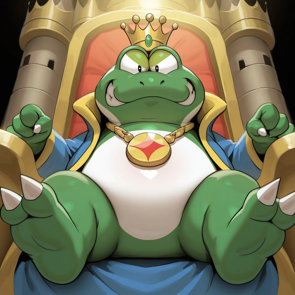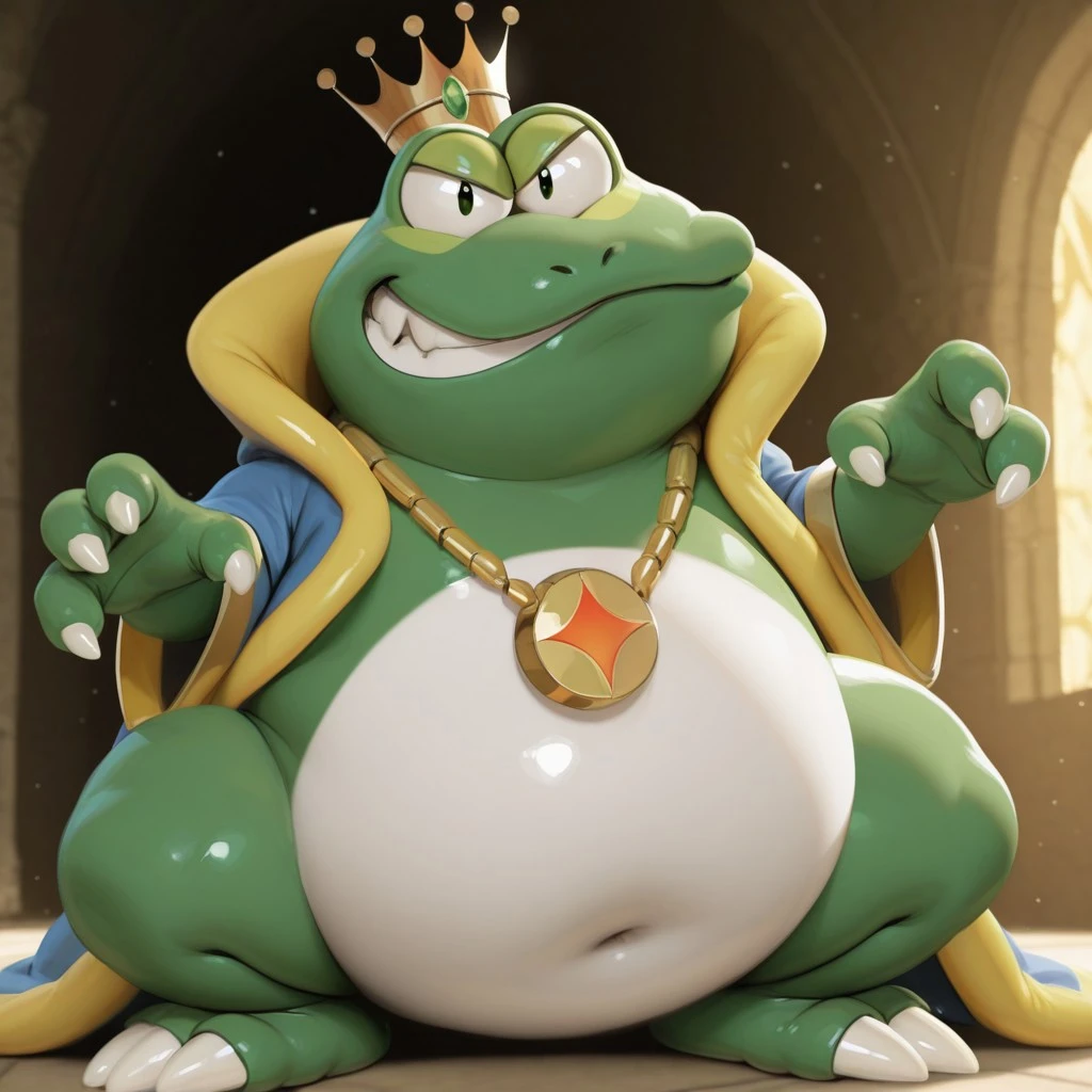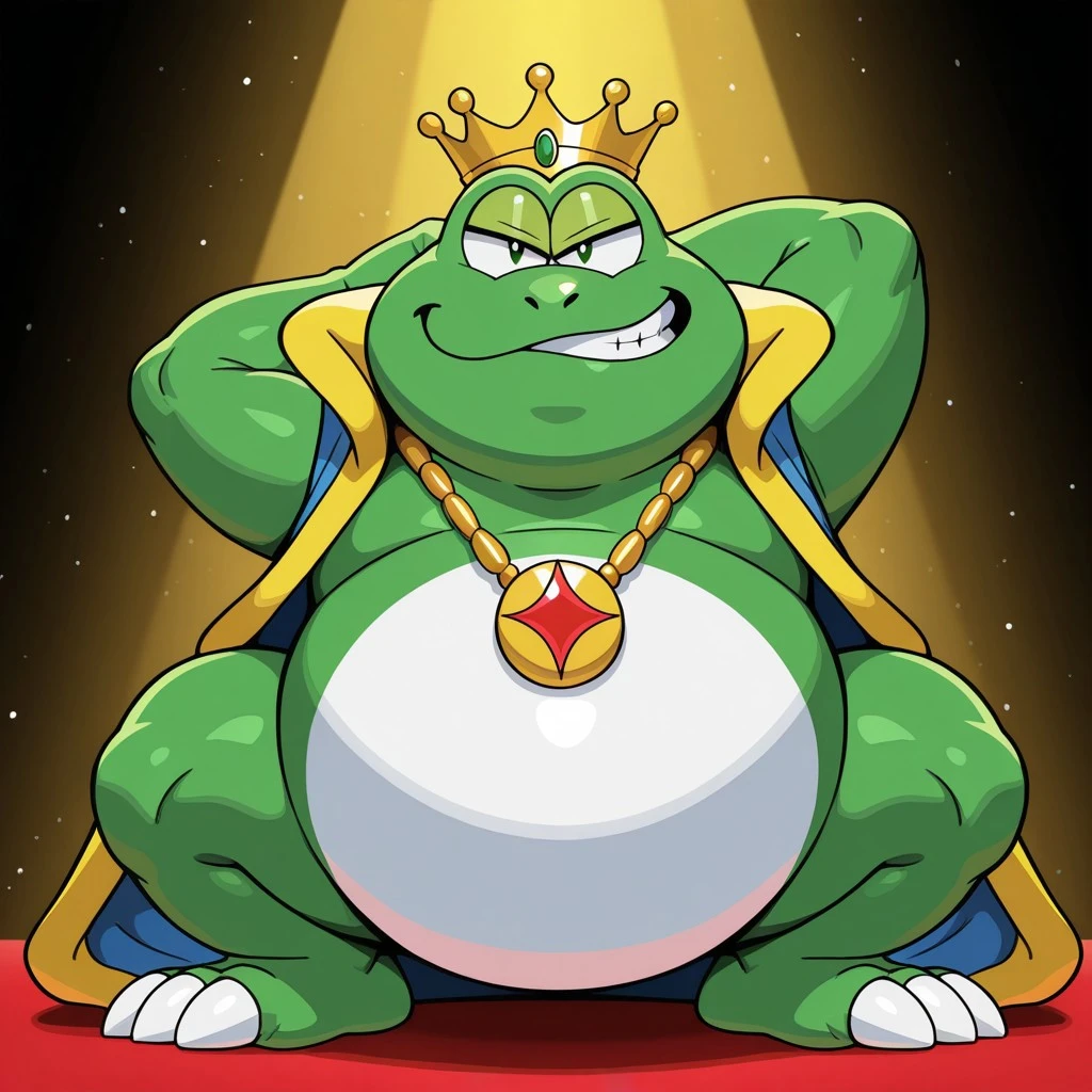 Tags: Wart_SMB2, frog, green skin, snout, nostrils, white belly, white claws, 4 fingers, 2 toes, light green eyelids, big eyes, black pupils, chubby, short legs, thick thighs