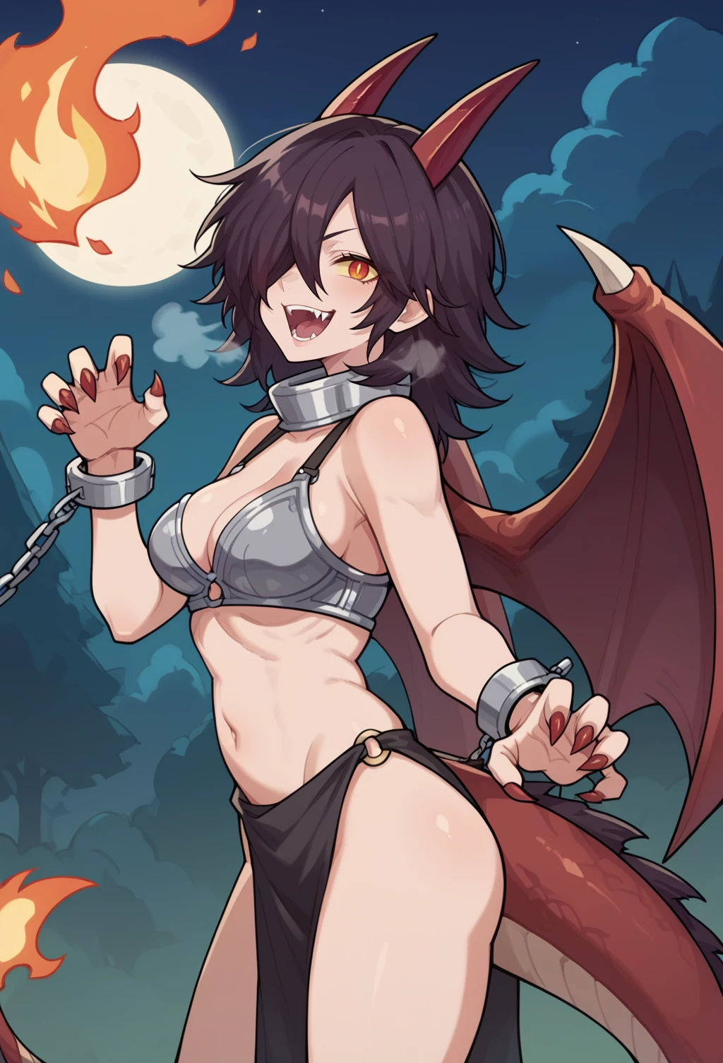 Helpful tags: mature female (without it, LoRA may generates a character with a huge head for some reason), handcuffs, fangs, ...