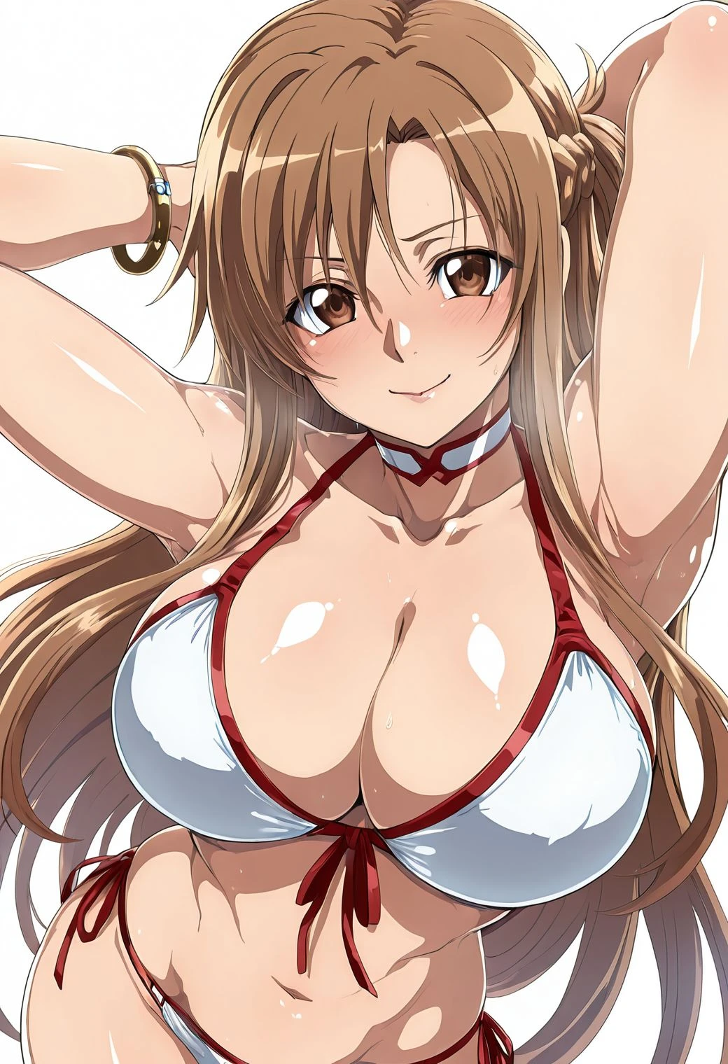 This style leans toward a toned/slightly muscular style for females, if you do not prefer that add "toned, muscular female" to your negative prompt.