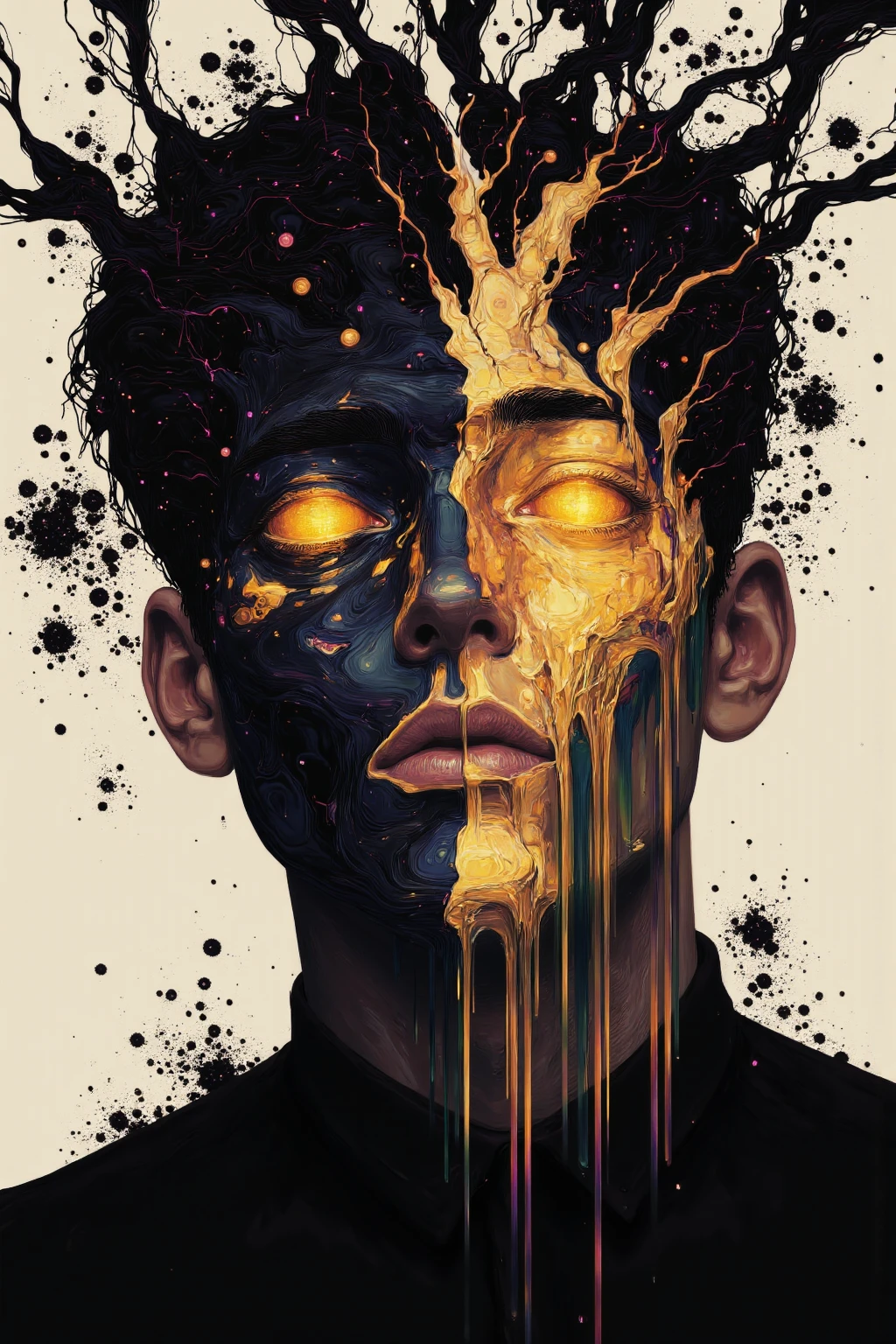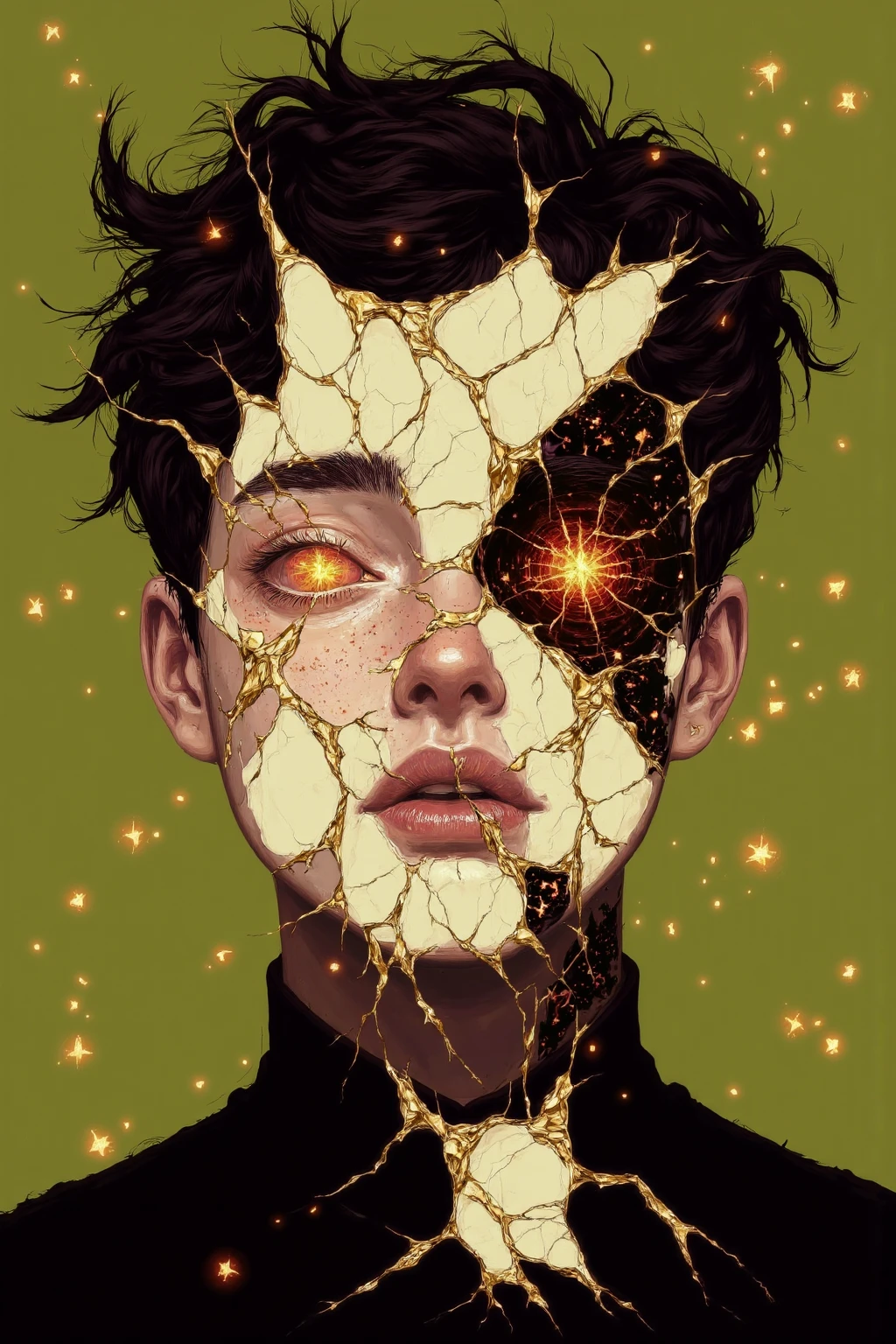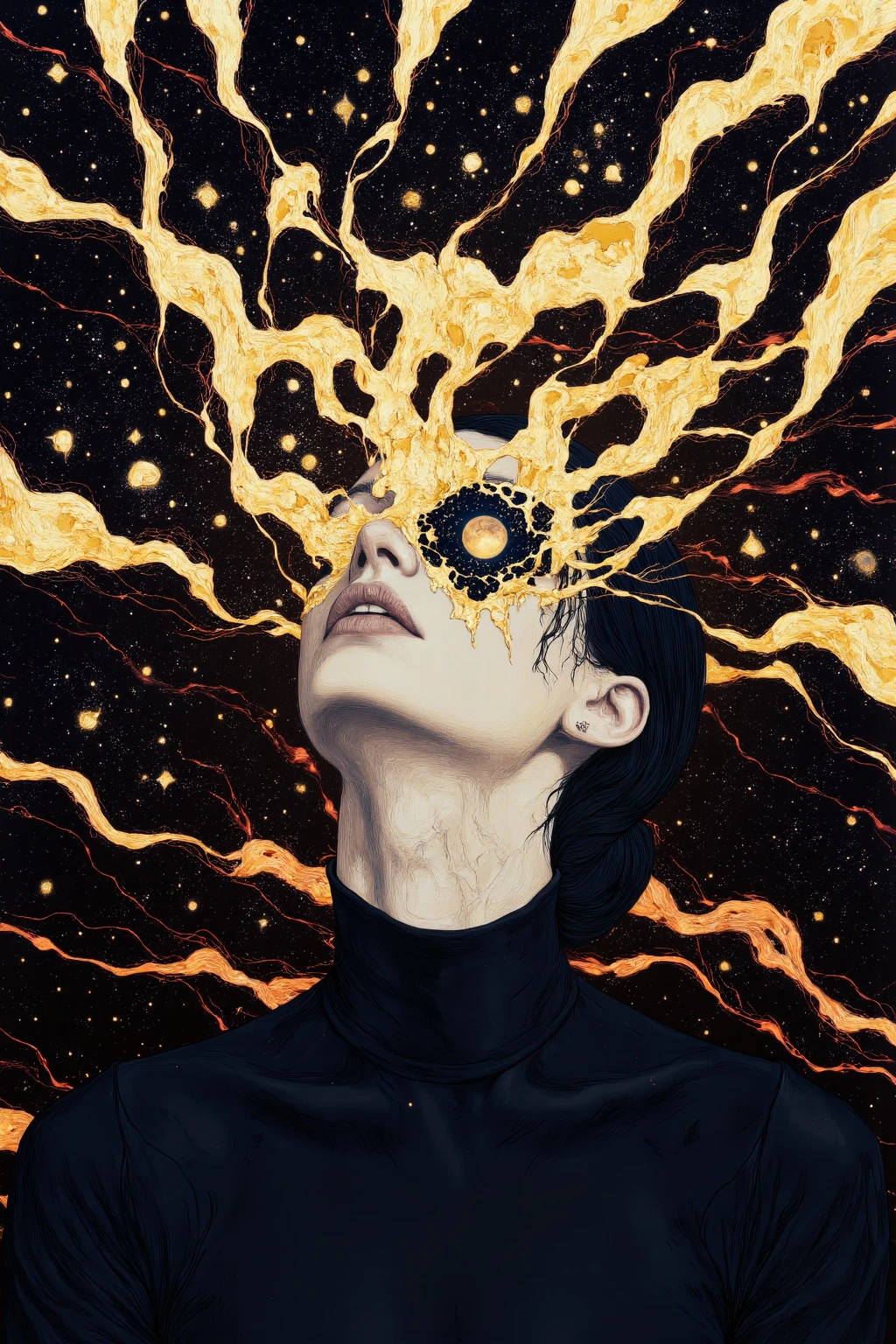 This style explores surreal and ethereal aesthetics, blending fragmented or deconstructed human forms with metallic elements, flowing textures, and luminous patterns. The compositions often emphasize abstract beauty, distorted realities, and otherworldly atmospheres, combining organic and mechanical elements into cohesive, visually striking portraits.