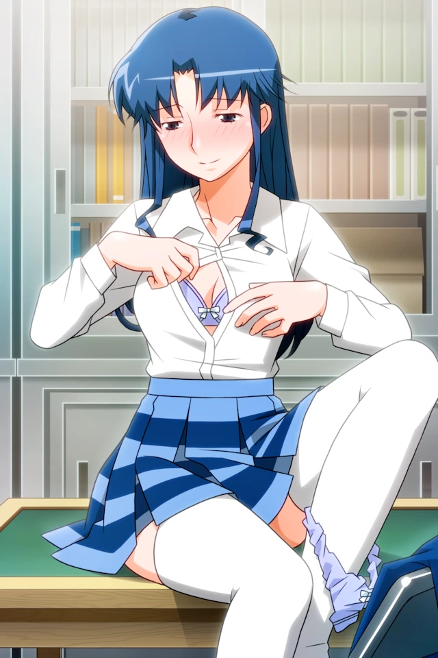 fujiwara aya, tanaka ryou, dark blue hair, long hair, Yamato Nadeshiko, blue eyes, medium breasts