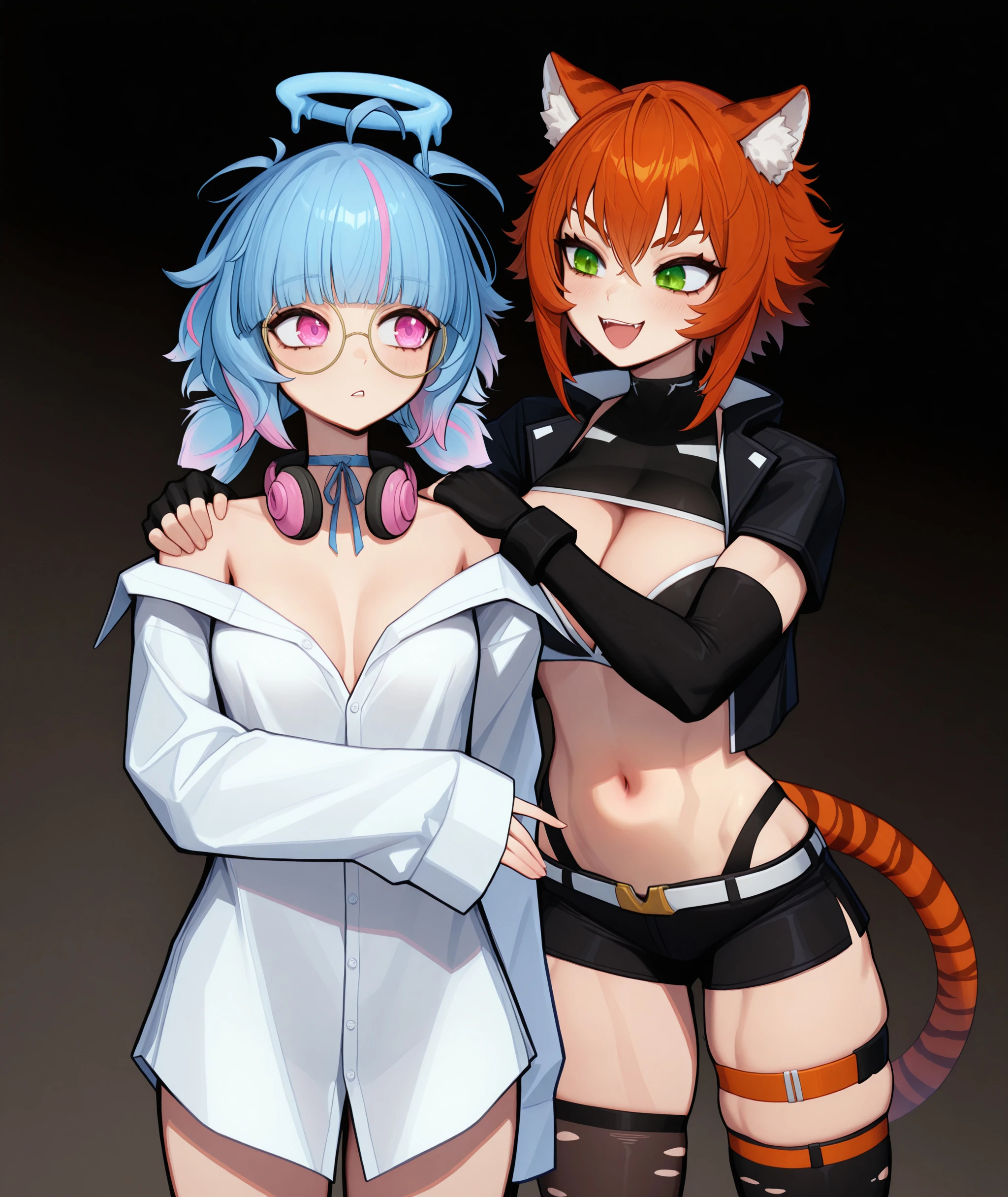 asymmetrical legwear, thighhighs, torn thighhighs, orange thigh straps, shoes,Also personally recommend adding muscular female at around 0.5 to 0.7 weight to negatives.