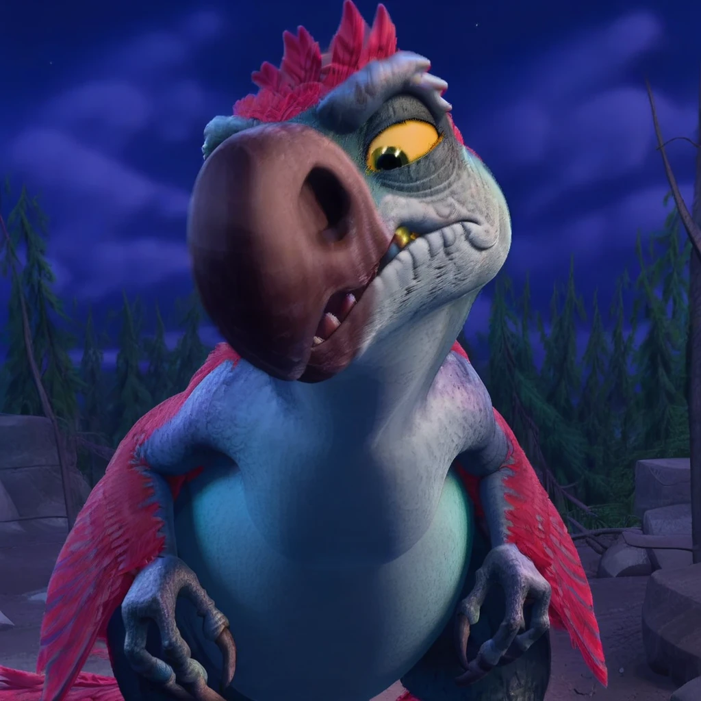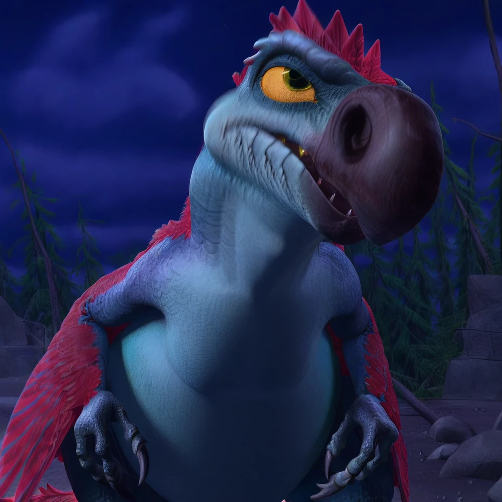 gavin the dinobird, 3 differents poses scenes, ice age collissio course, HD, ice age collission course, identical scales colors, red feathers,