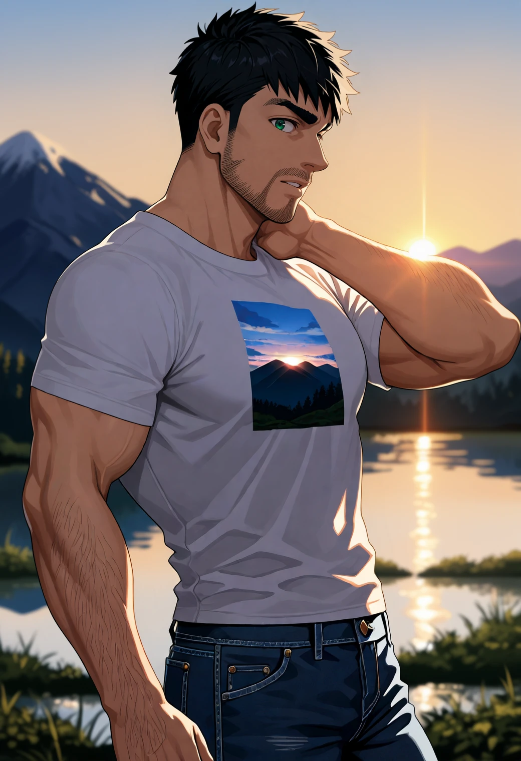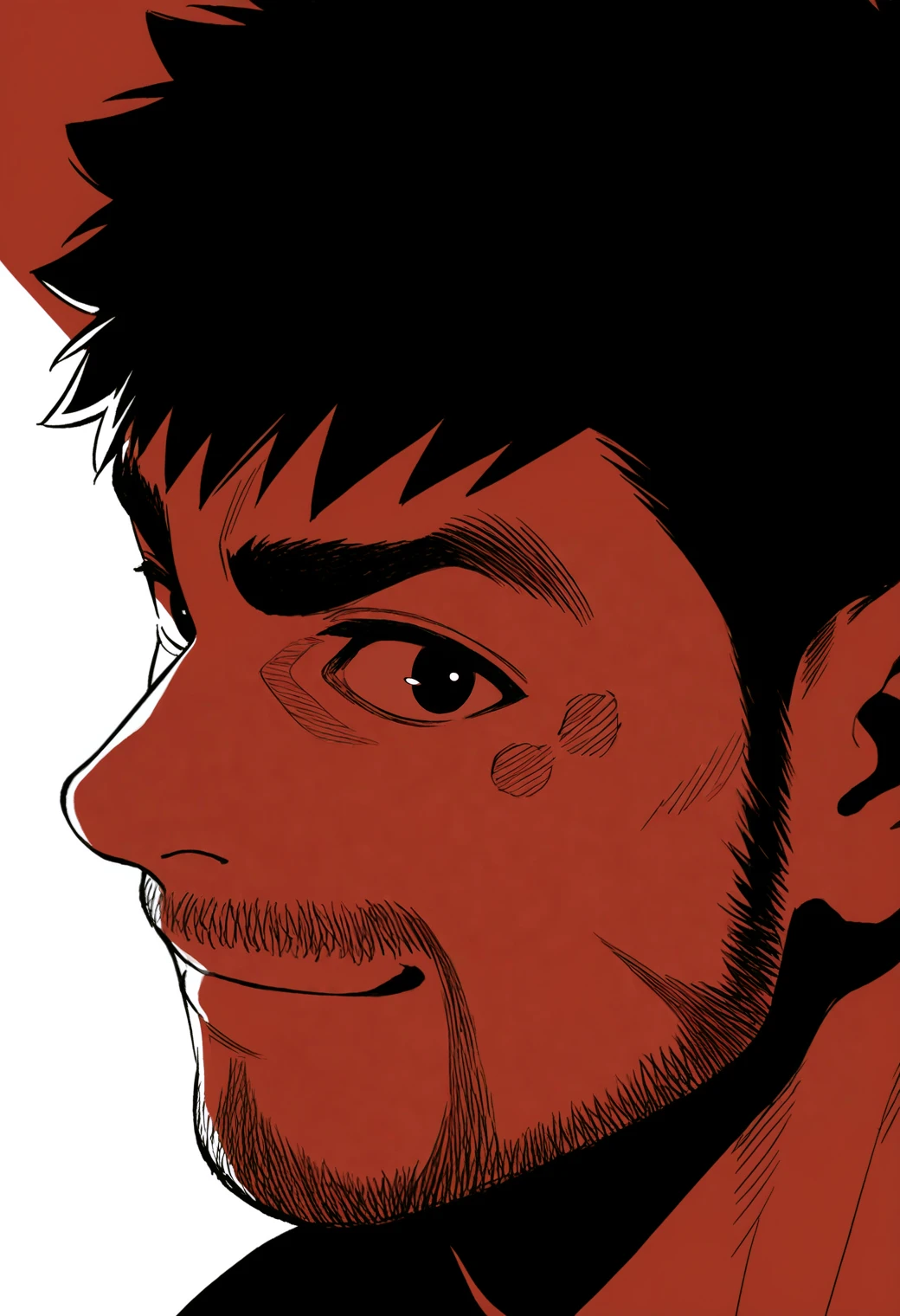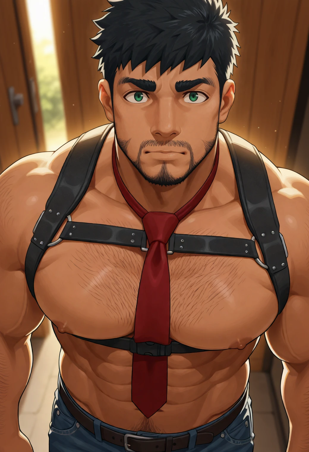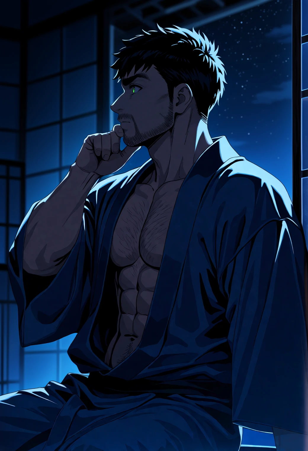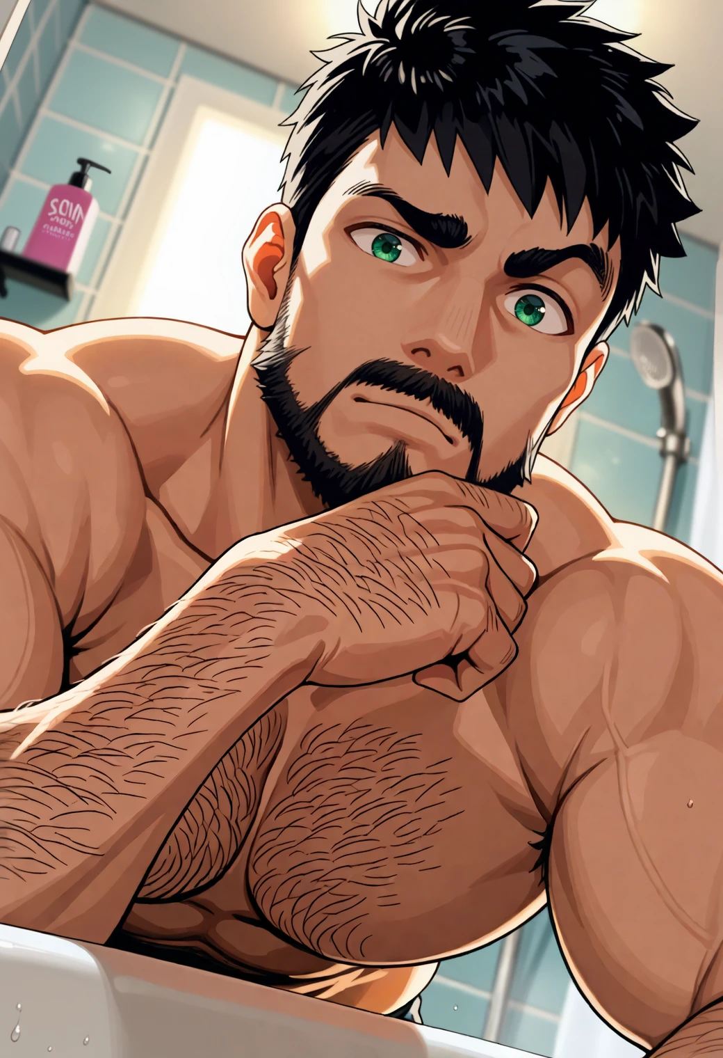 knkr4_g3n, black_g3n_hair, green_g3n_eyes, beard stubble, Auxiliary Tags: