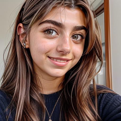 A 21 y.o. girl, vaguely Italian-Israeli, with long brown hair, a big smile, brown eyes, detailed face, genuine look on her face, pretty, modest, fully clothed There is a reddit post with a bit more detail about the process HERE