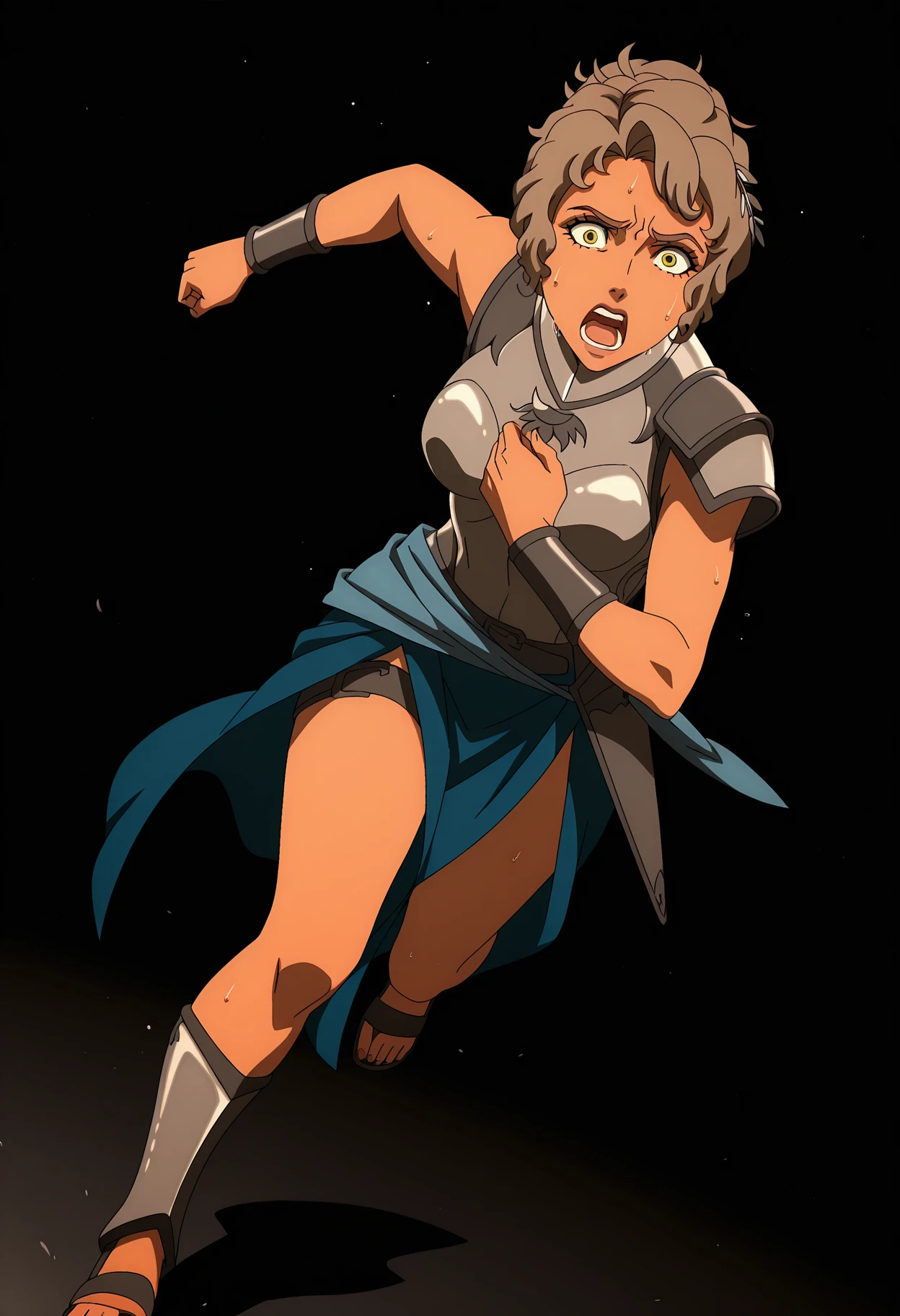 armor, full armor, breastplate, shoulder armor, pauldrons, bracer, blue skirt, faulds, greaves, sandals