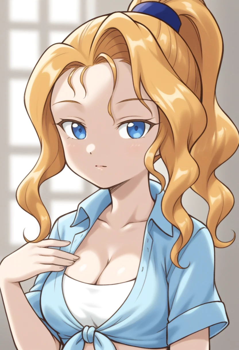 tied shirt, short shorts, boots
