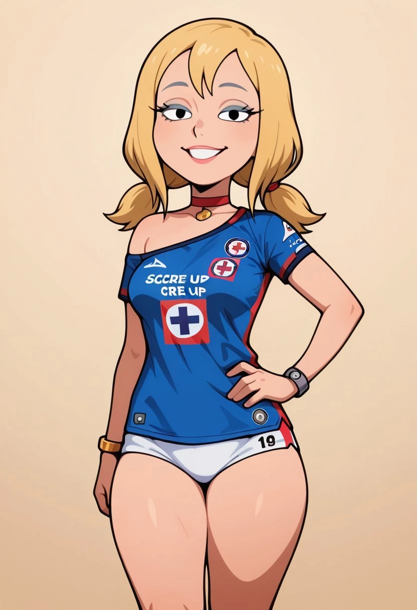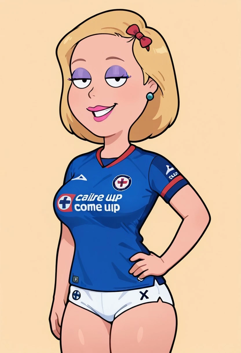 soccer uniform, blue shirt, sports jersey, white shorts, V shaped bottom, thighs clothes
