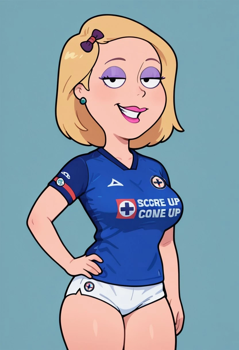 soccer uniform, blue shirt, sports jersey, white briefs, white V shaped bottom, thighs clothes