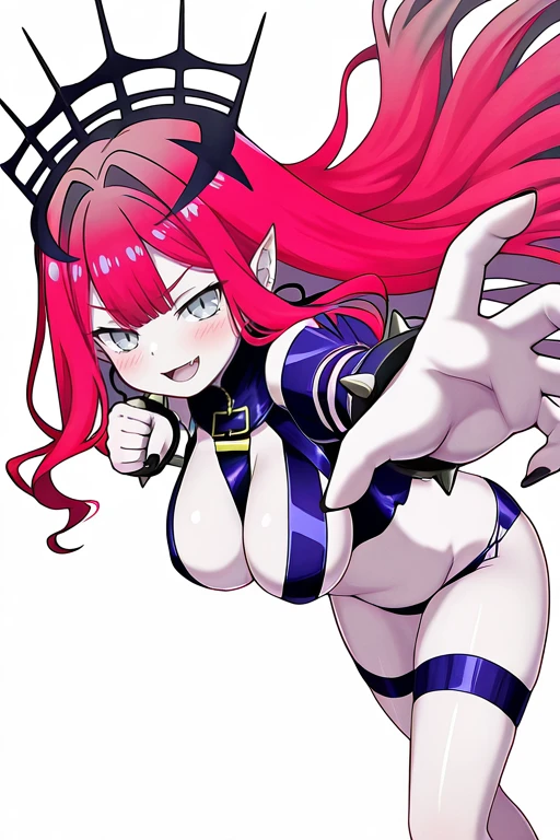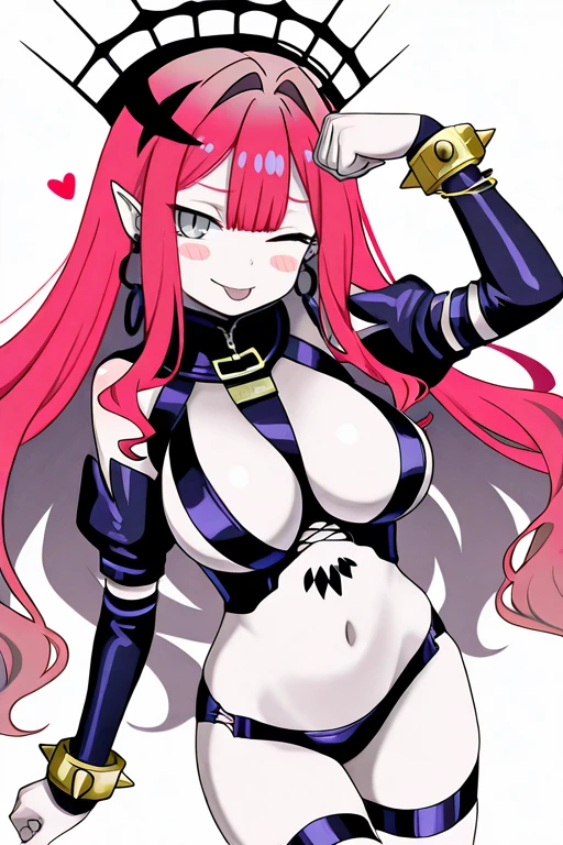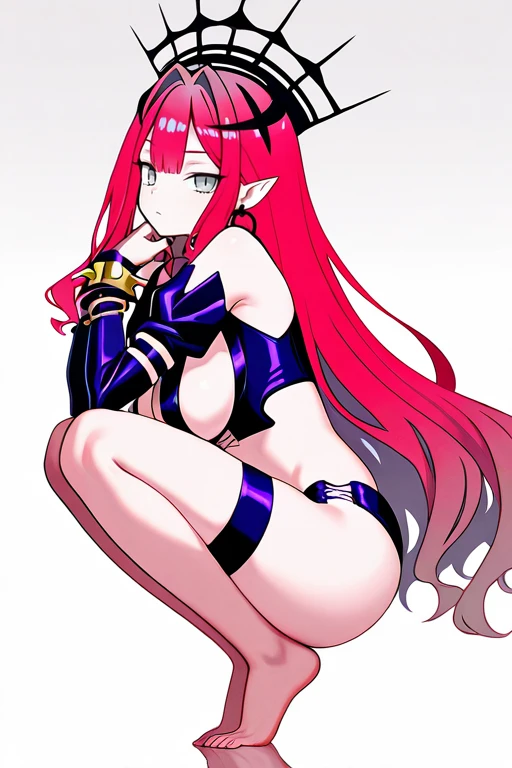 1girl, solo, hd2ndbaobhansith, long hair, pink hair, tiara, earrings, grey eyes, pointy ears,