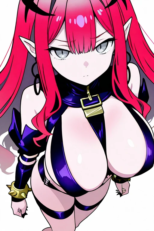 large breasts, 2ndbaobhansithdef, bare shoulders, detached sleeves, revealing clothes, spiked bracelet, black panties, thigh straps, barefoot,