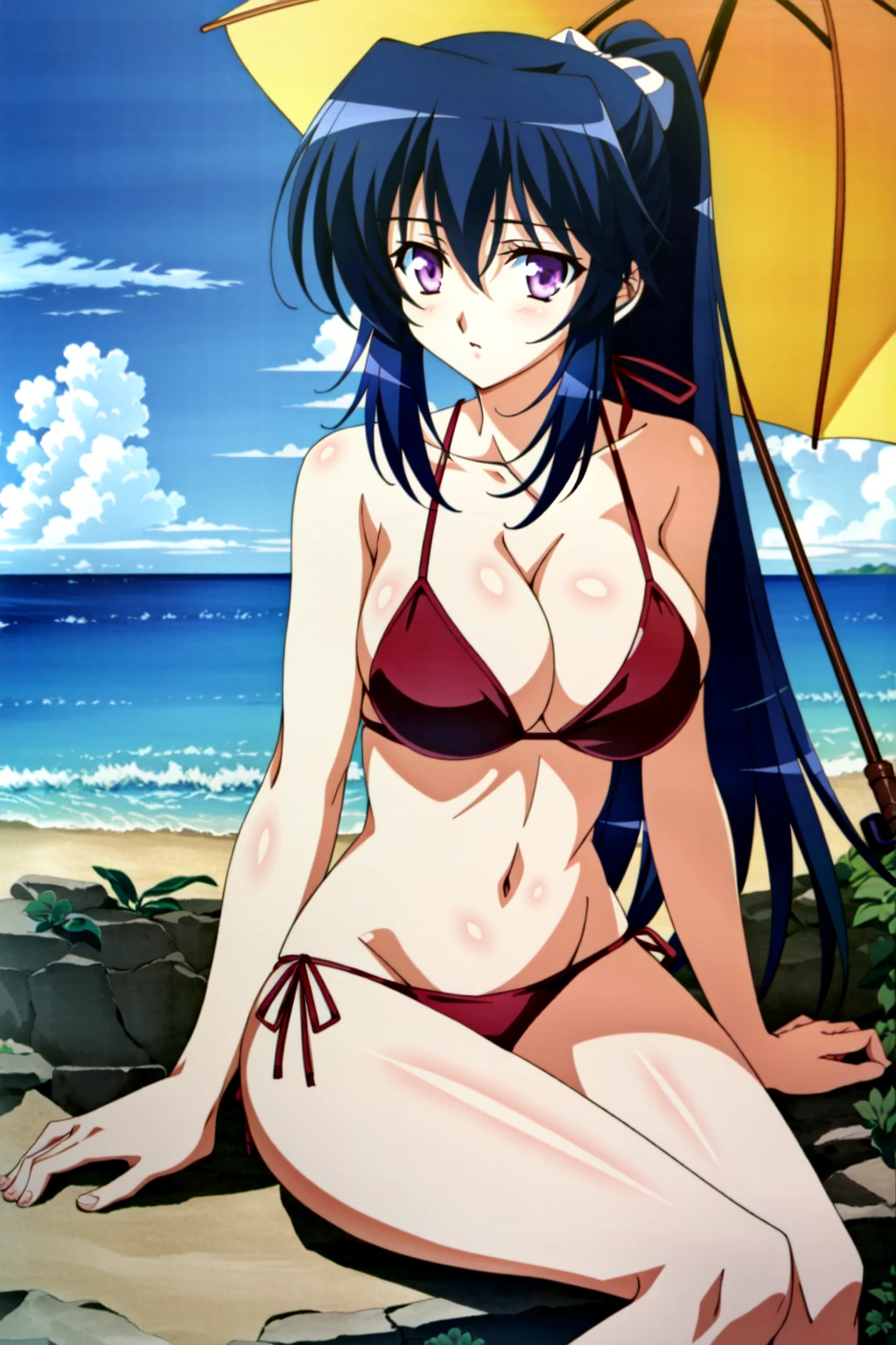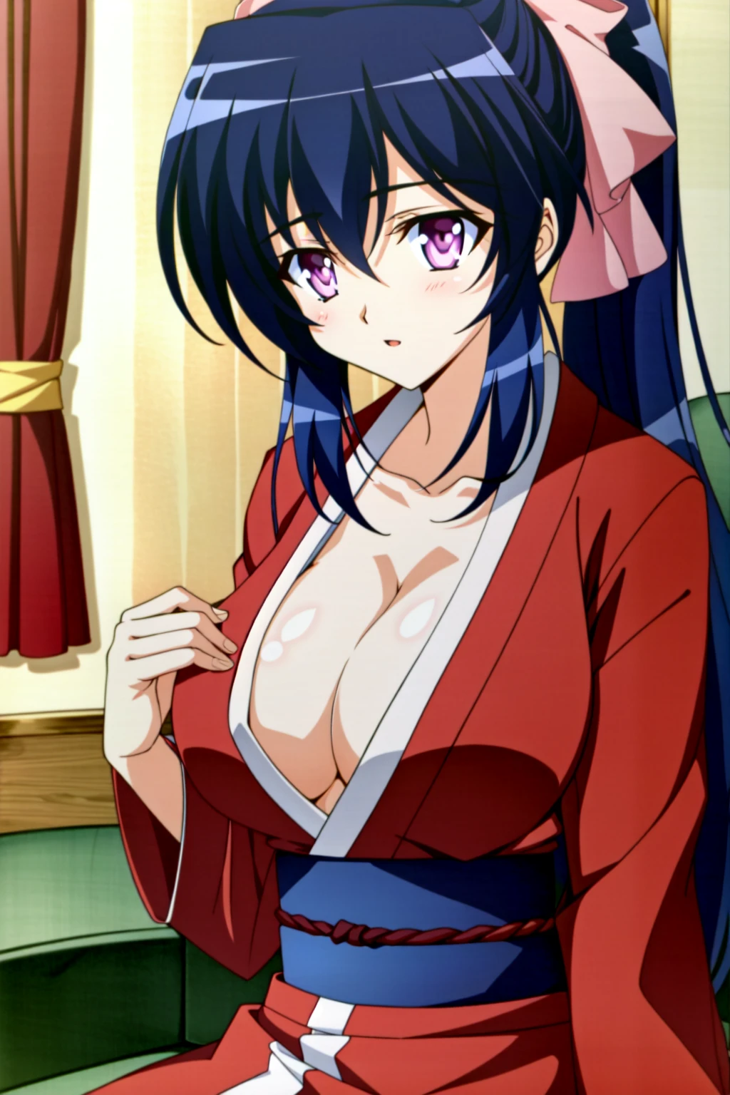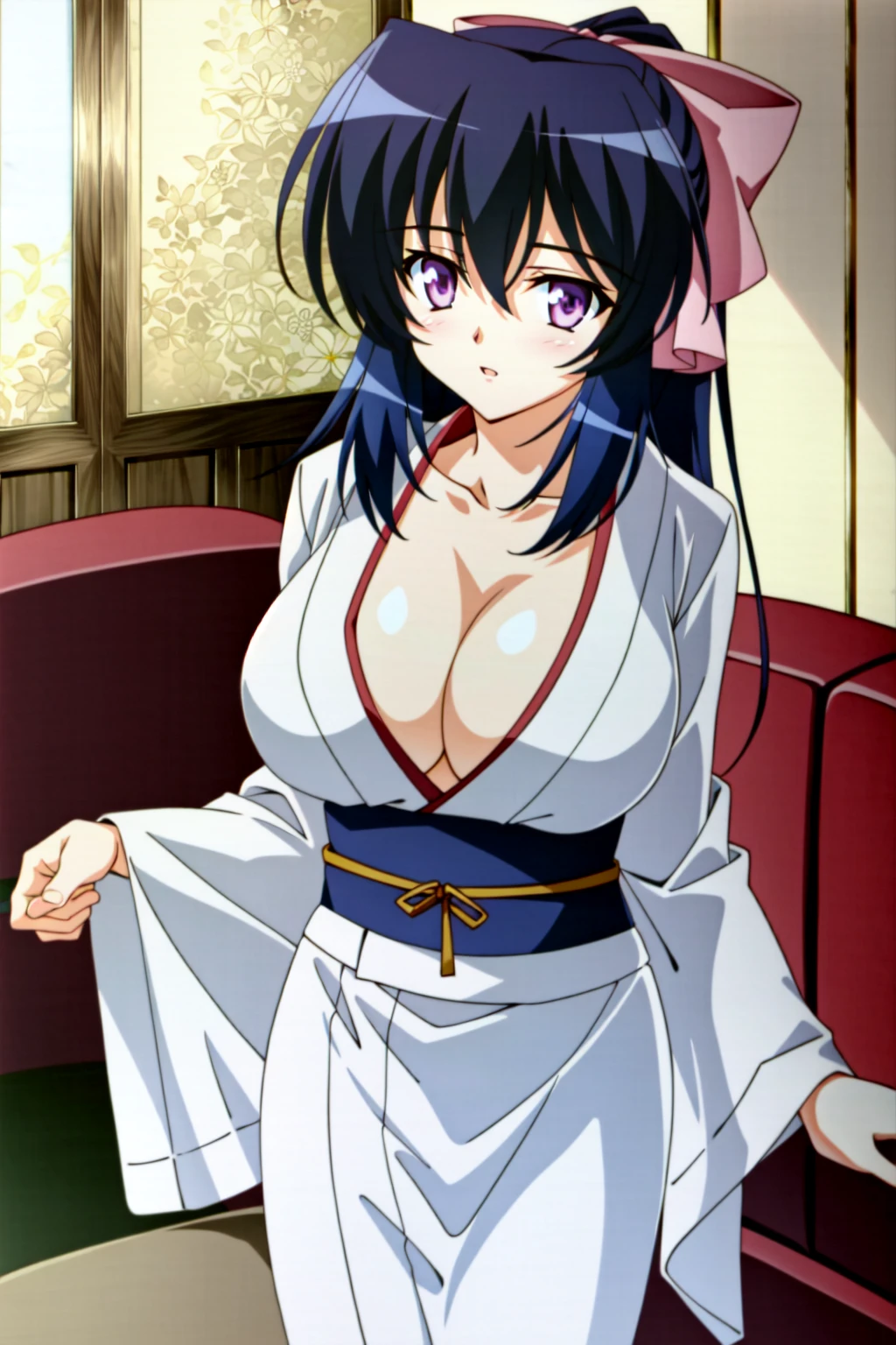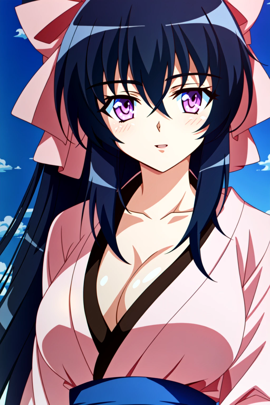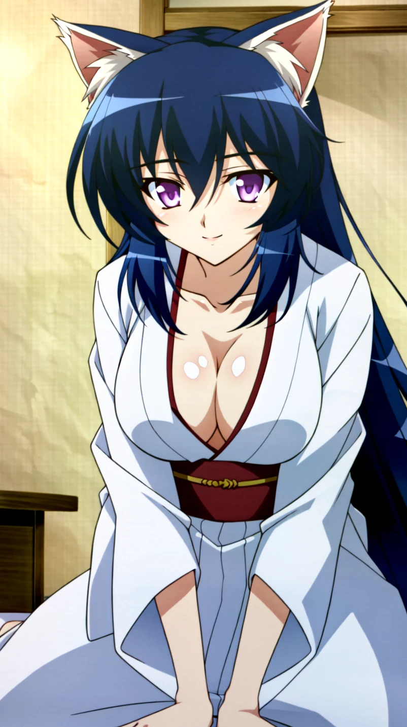 Himari Noihara, breasts, purple eyes, cleavage, choker, black hair, long hair, large breasts, japanese clothes, cat ears