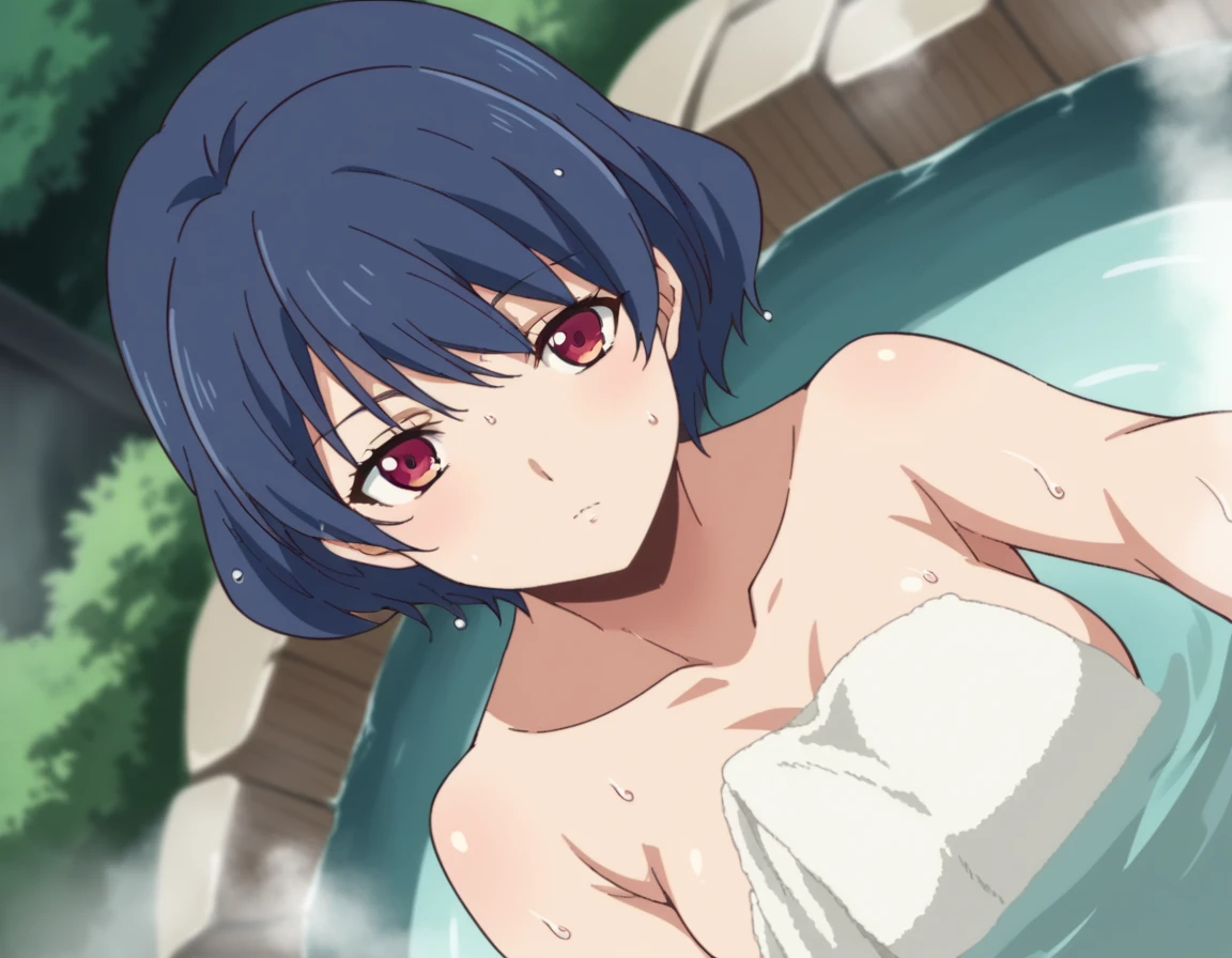 rui tachibana, short hair, red eyes, blue hair,