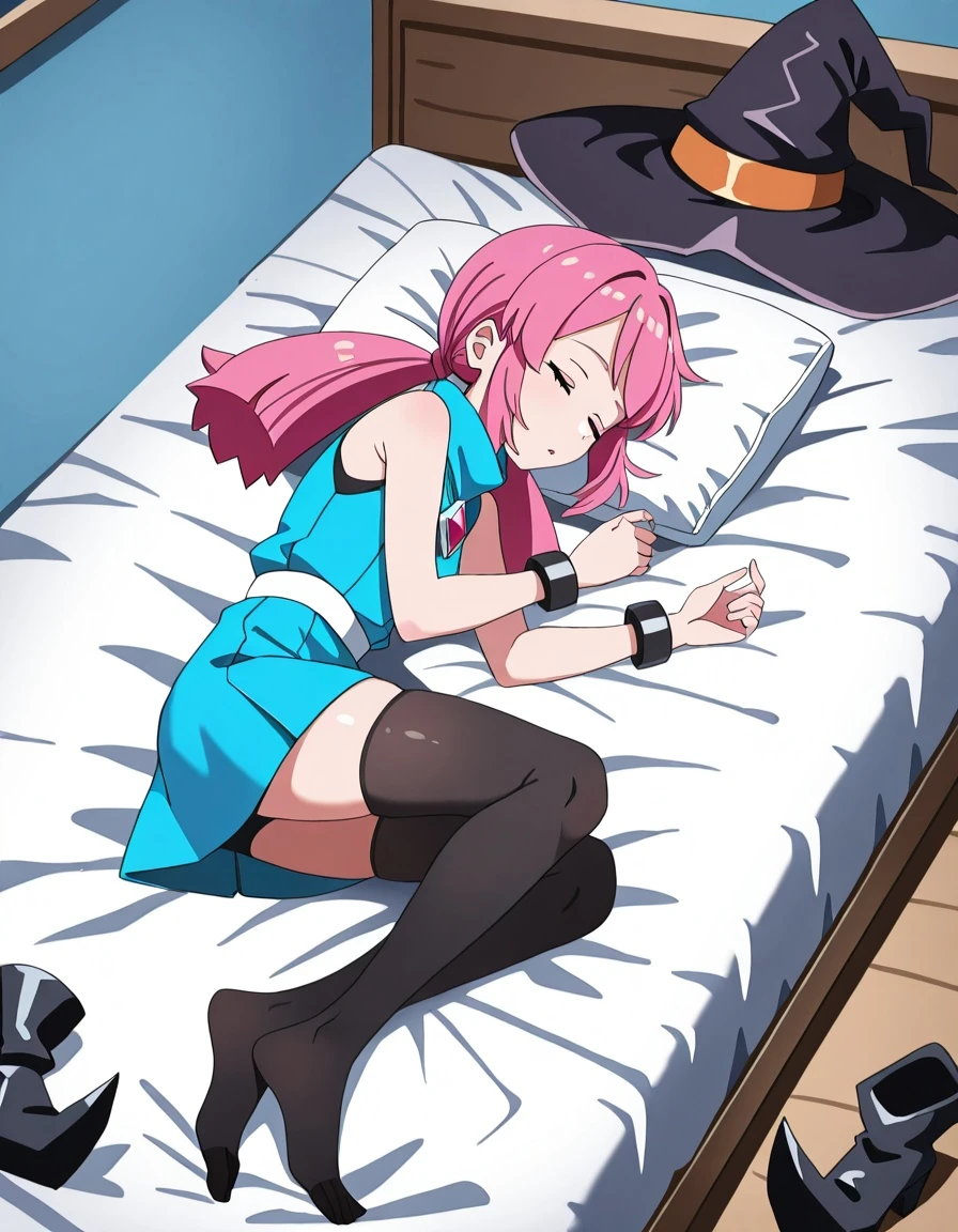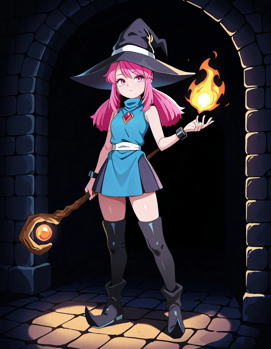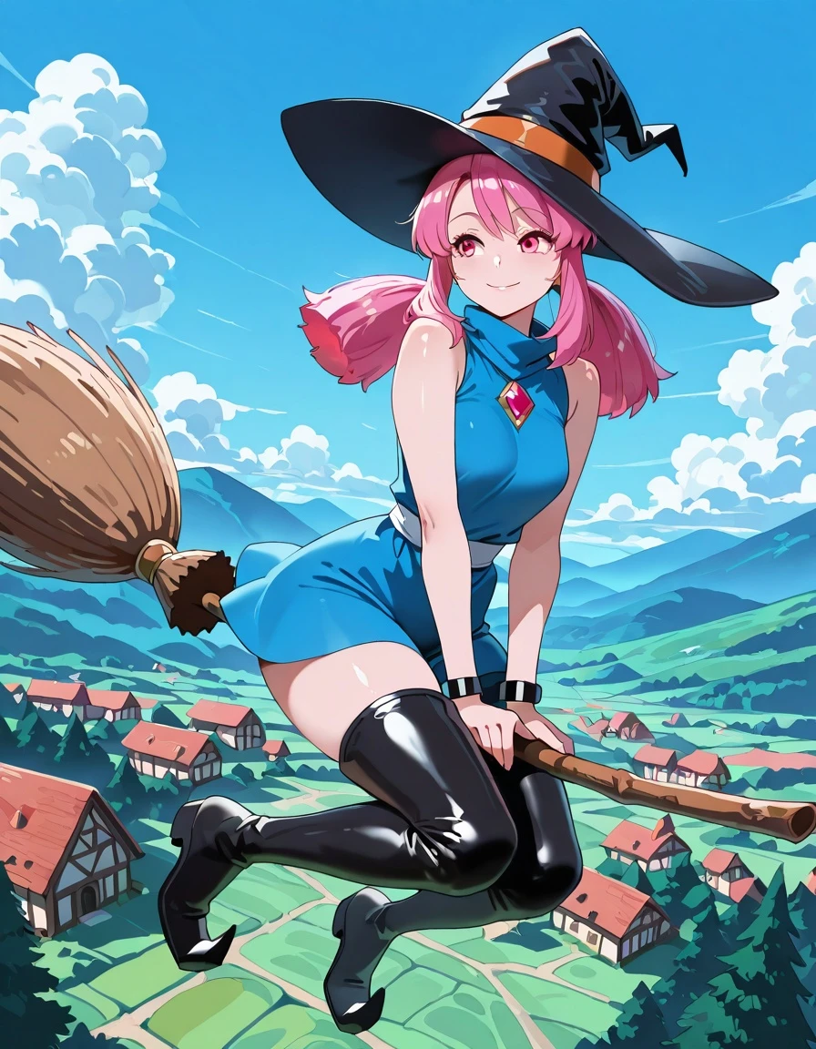 long hair, twintails, pink hair, pink eyes, witch hat,