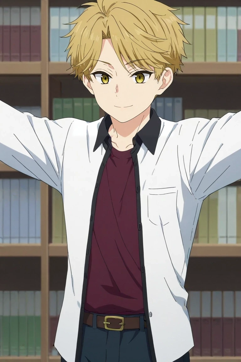yuuma_nikaidou, blonde hair, yellow eyes, short hair