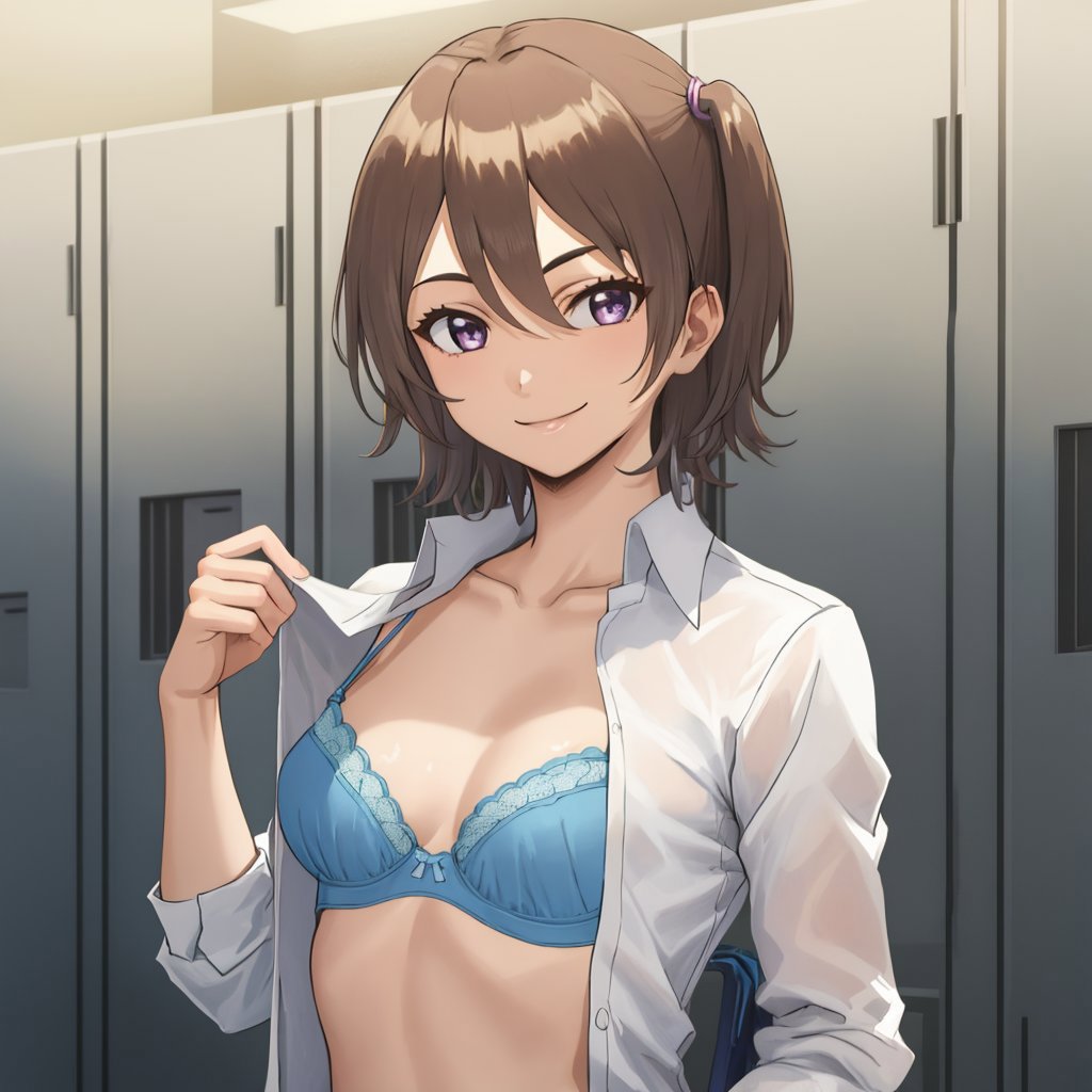 If you want her to be ???? + tie like in the hentai then use "tie" in postive tags and "collar, collared shirt, shirt" in negative and pray to the random noise generator for luck.
