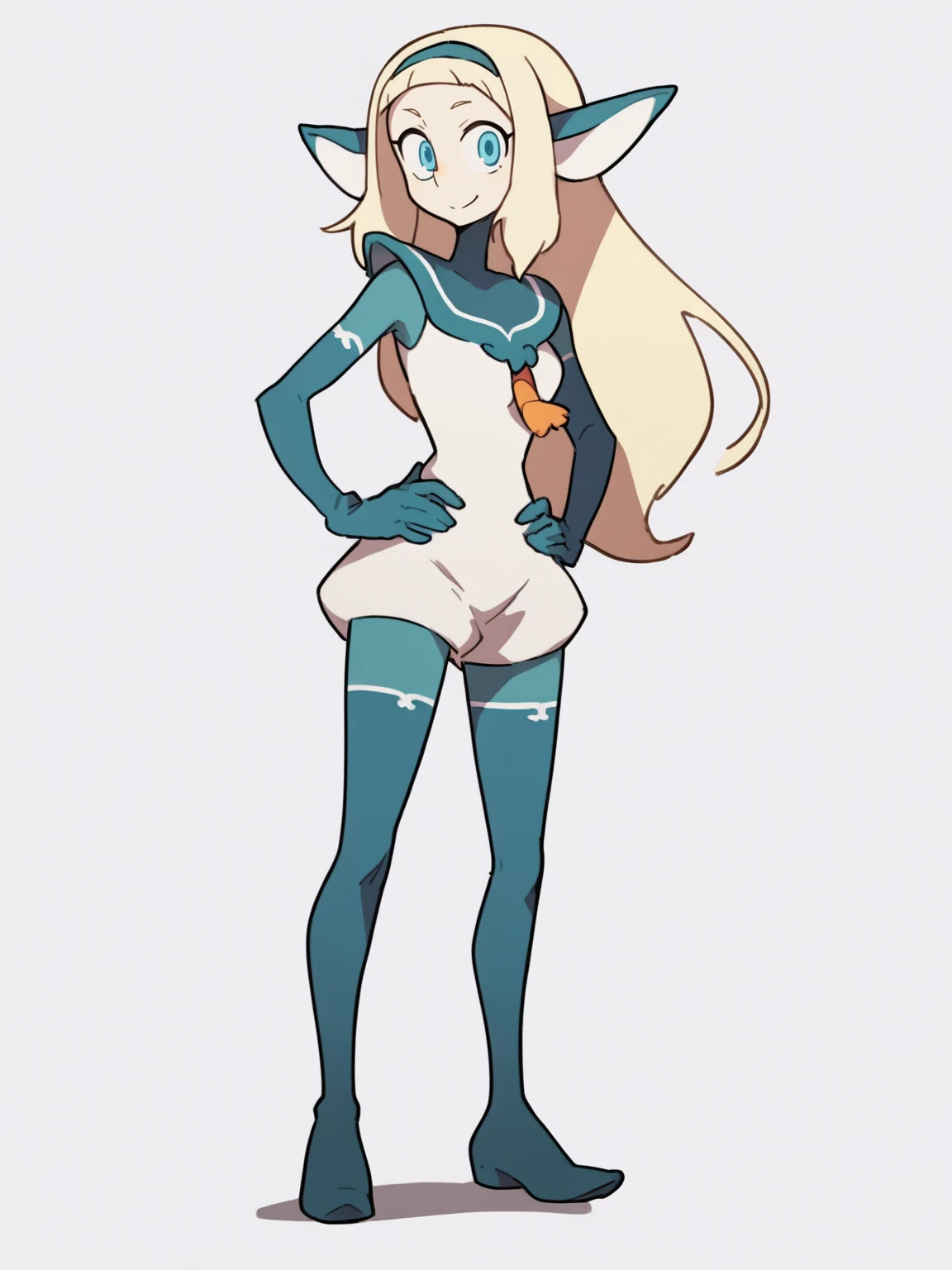Default outfit prompts : animal ears, bodysuit, colored skin, gloves, hairband, pantyhose, thighhighs, cape